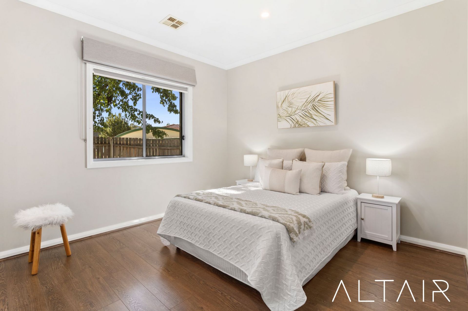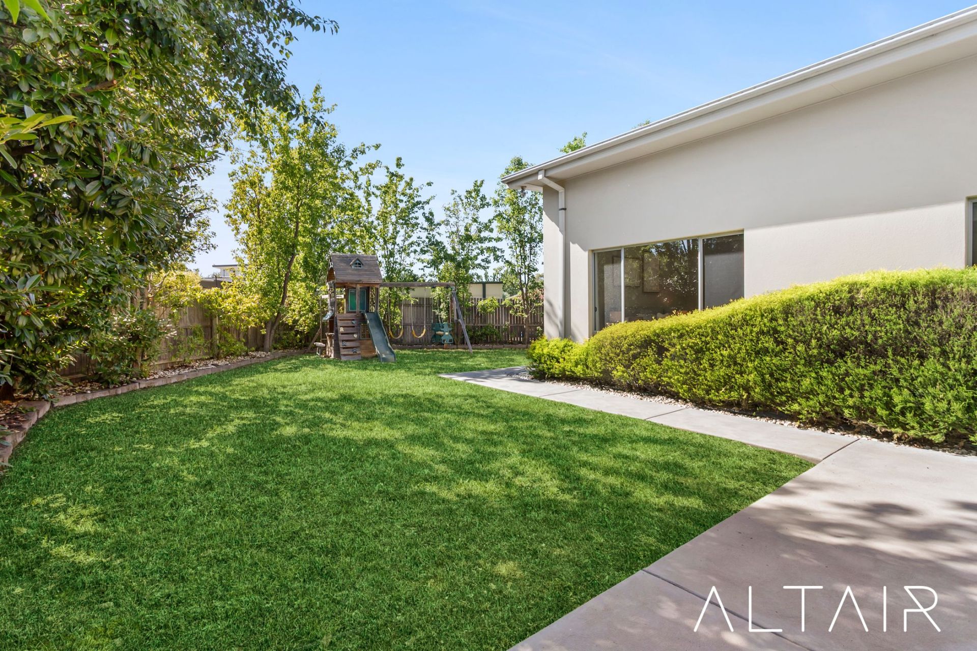 Seamlessly extending from the living spaces, the covered BBQ alfresco area creates an inviting environment for hosting family and friends. Complete with ducted heating and cooling plus additional reverse-cycle climate control, this space is designed for year-round enjoyment. The adjacent grassed backyard offers room for weekend activities and relaxed outdoor living.