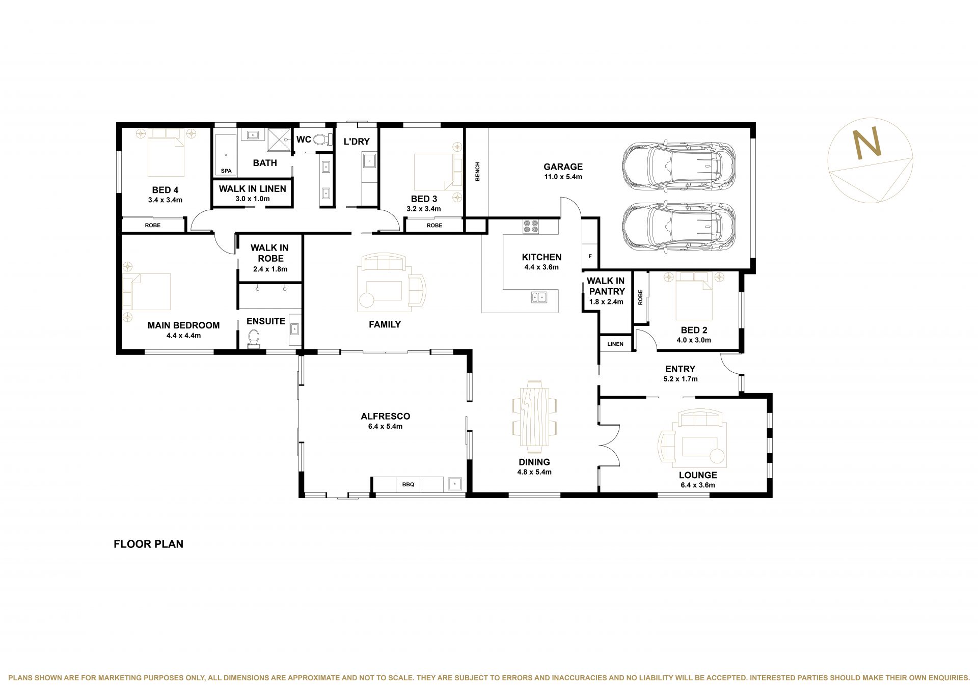 • Seamless alfresco entertaining area with BBQ space, ducted heating and cooling, plus additional split-system