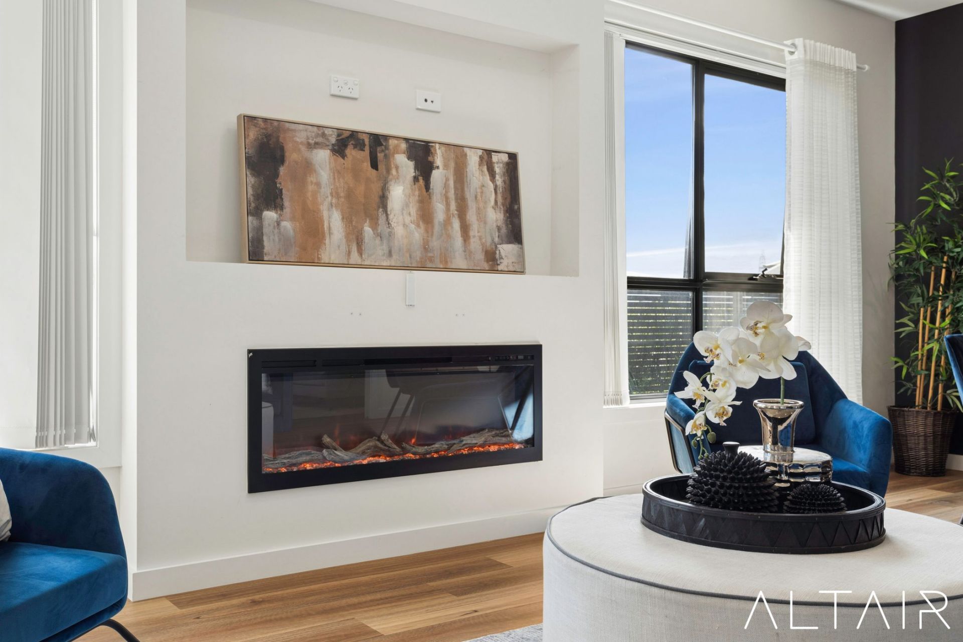 - Built in electric fireplace