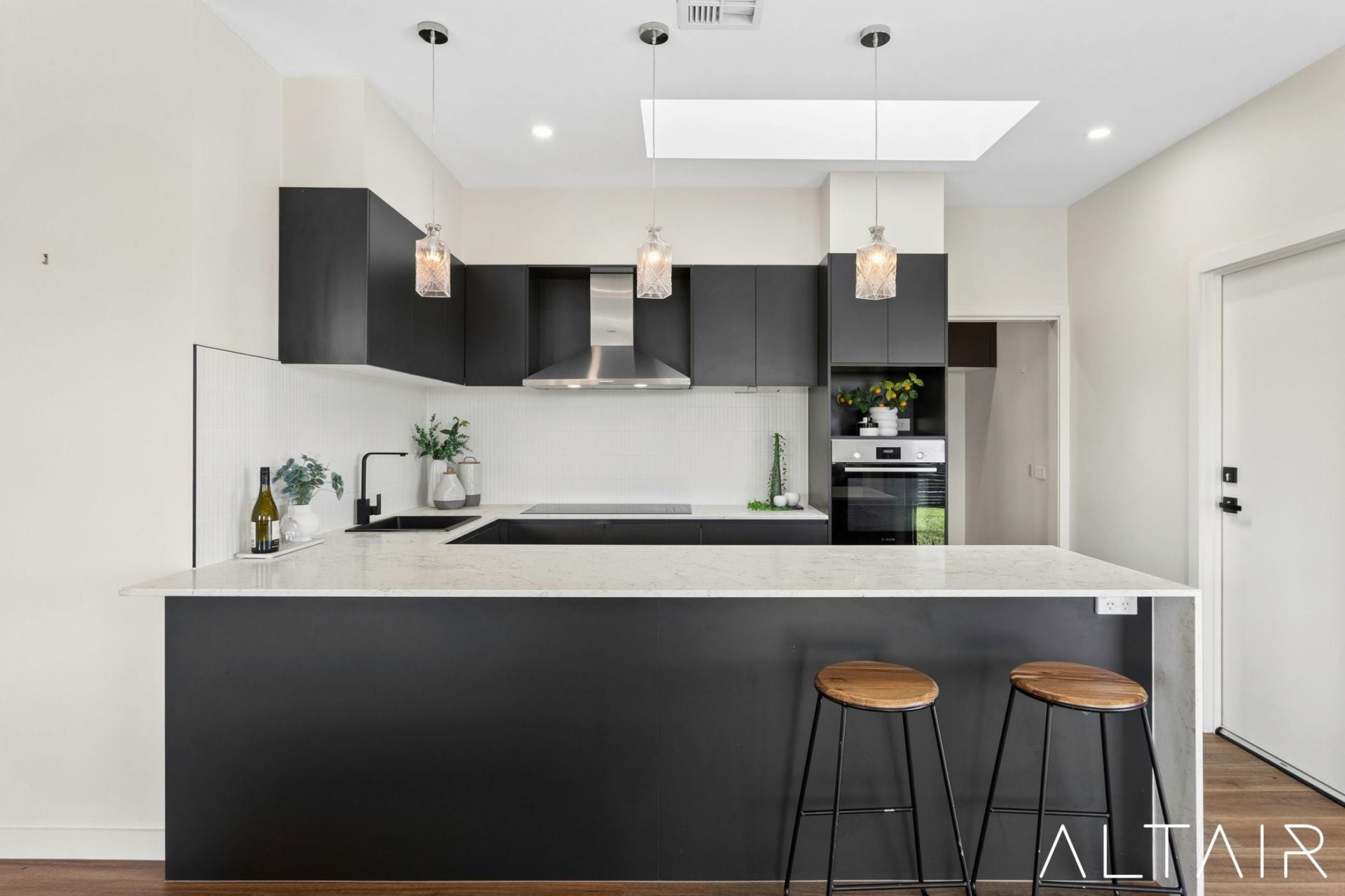 At the centre of the home, a spacious open-plan family, meals and kitchen area forms the natural hub for everyday living. The proportions of this space allow for both connection and flexibility, with room to relax, entertain and gather with ease. The kitchen is well-appointed with an induction cooktop, quality Bosch appliances, ample storage and a spacious walk-in pantry, delivering both quality and functionality within a space designed to perform.