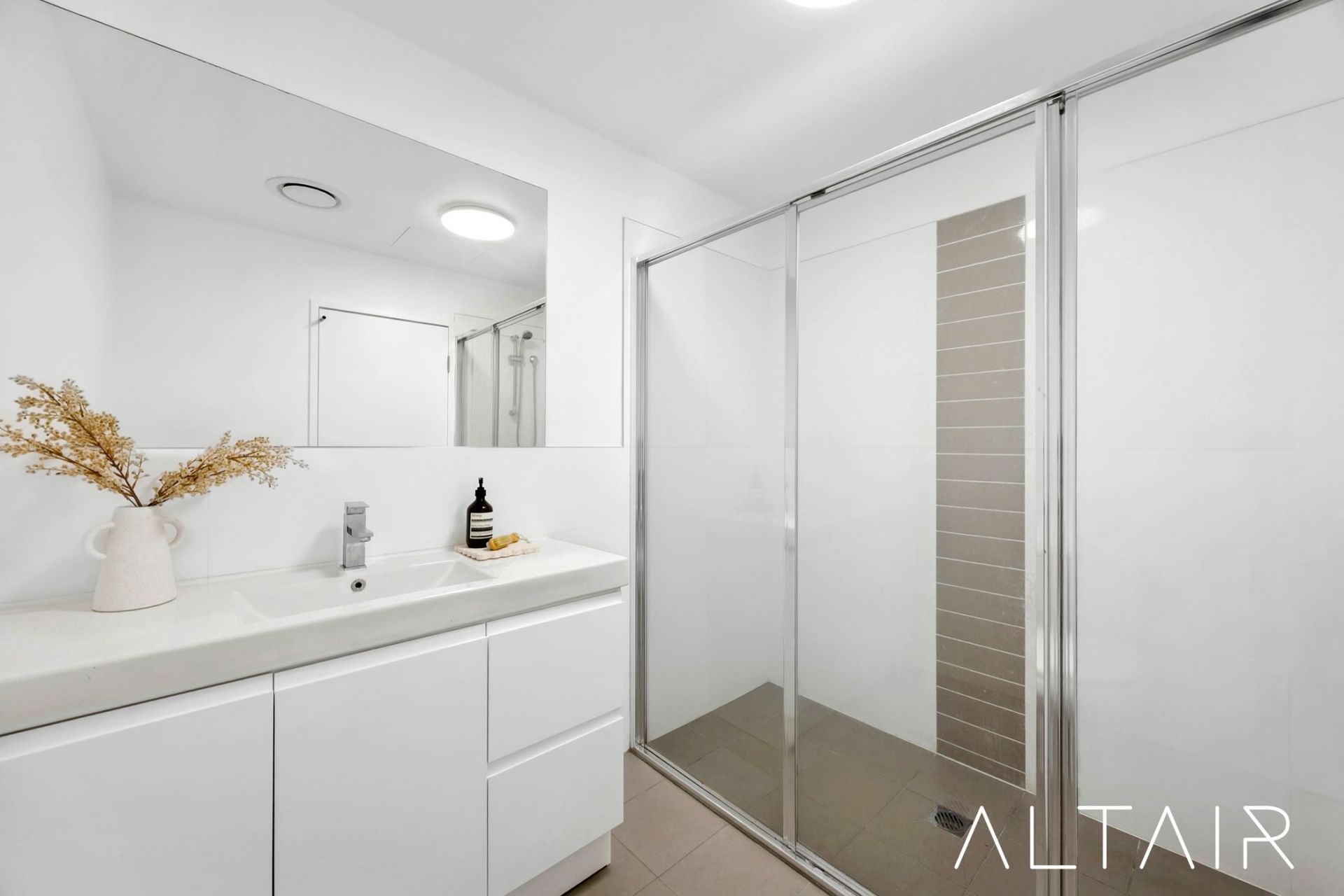 - Modern bathroom with full height tiling
