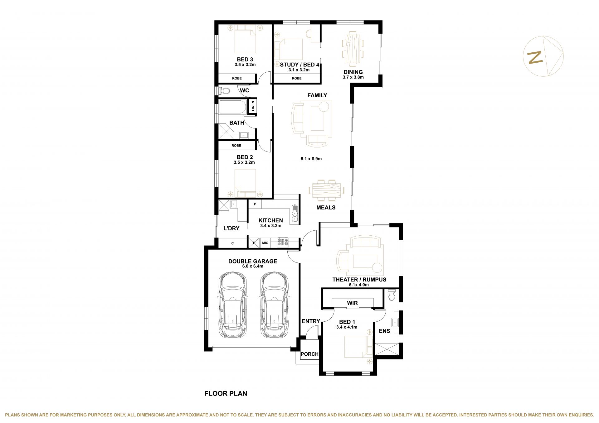 - Flexible fourth bedroom as a study/games/rumpus