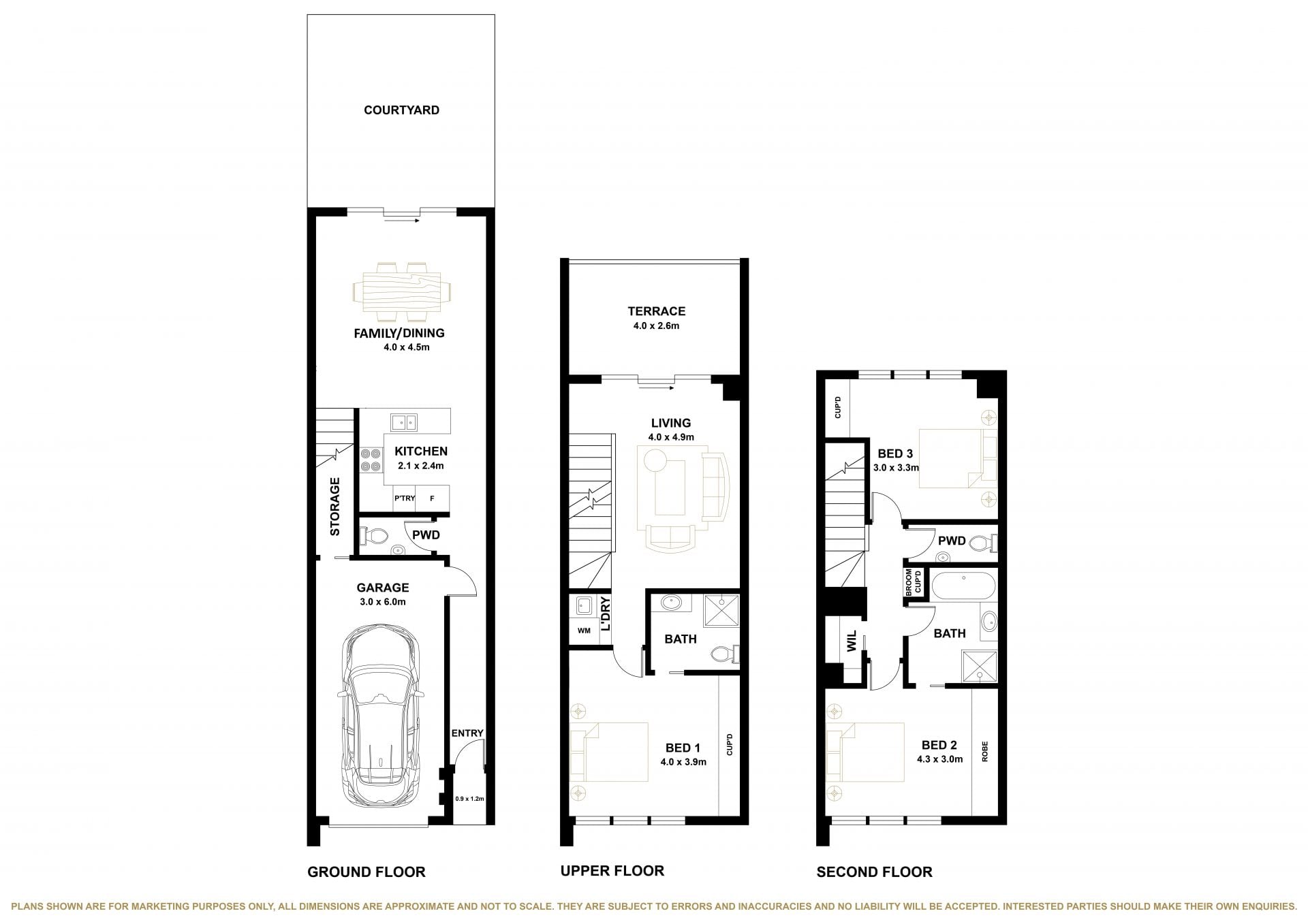 • Main living area on ground level with courtyard access