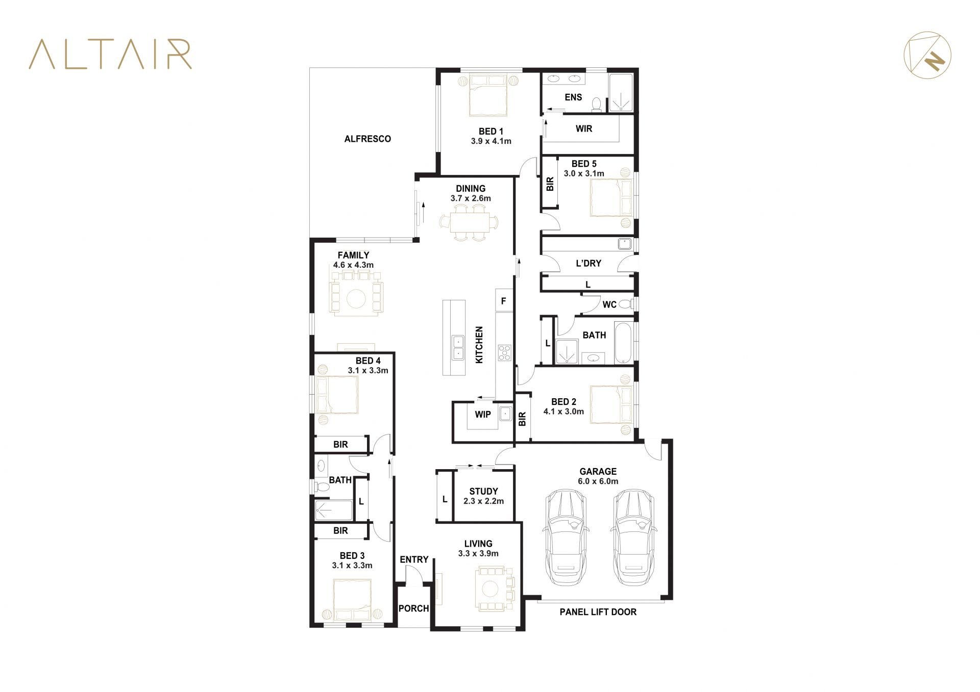 - Multiple living areas including lounge, family & dining areas