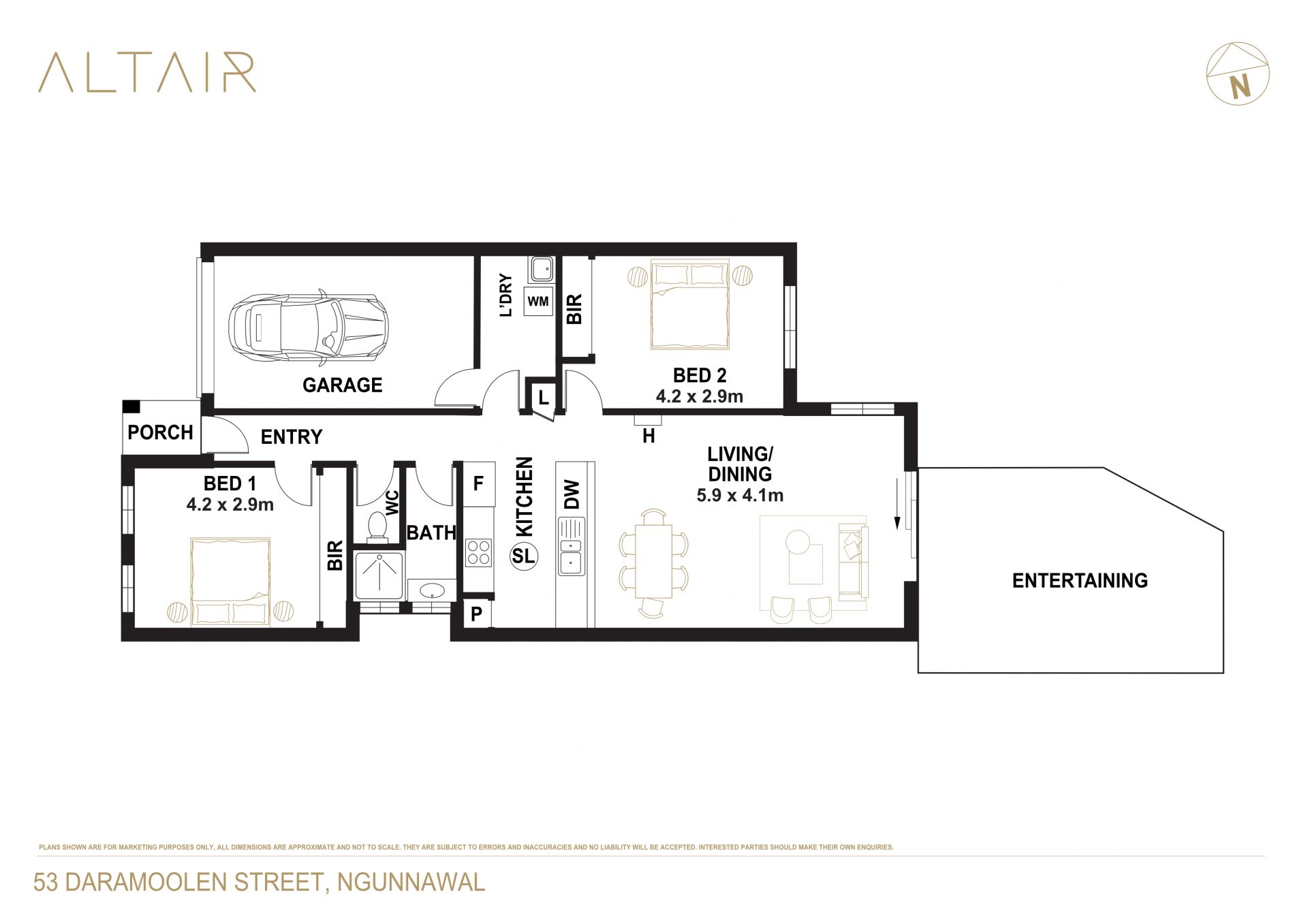 Featuring open plan living areas and two spacious bedrooms with built-in robes, the clever and efficient design of the home is complimented by a seamless connection to the outdoor spaces. Enjoy entertaining guests or relaxing on the rear deck, complete with covered gazebo, or let the kids and pets enjoy the lawn within the secure yard area.