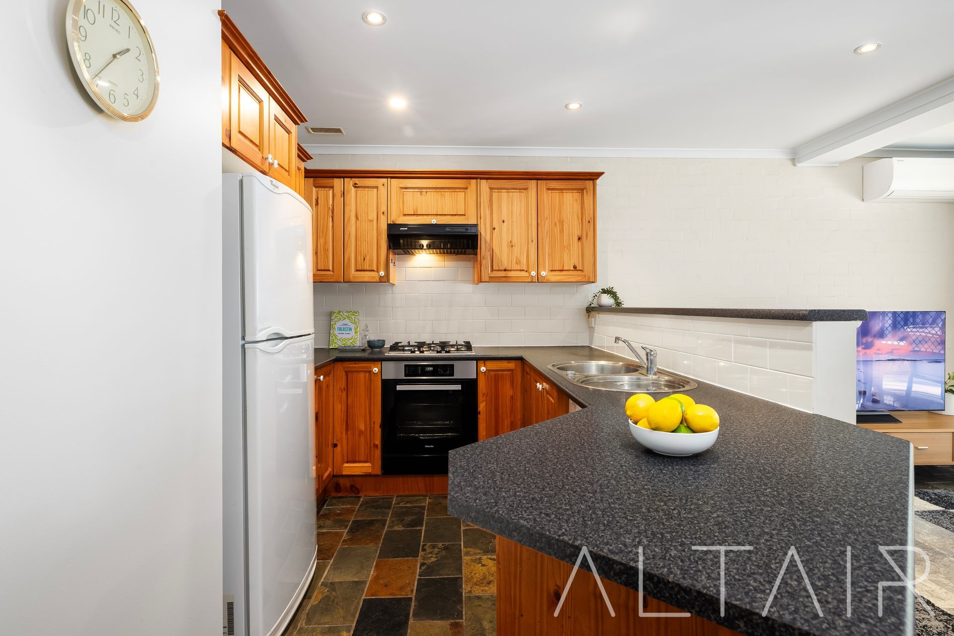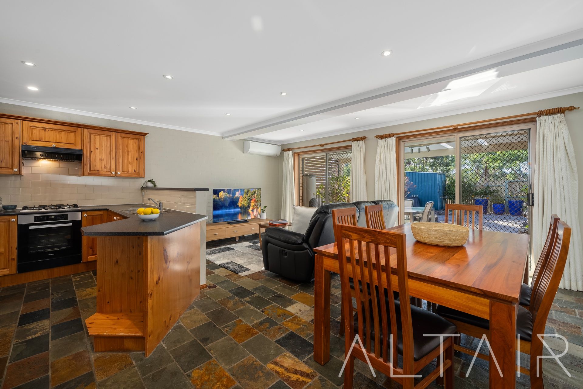 Step through the front door to discover warm and inviting interiors with Northerly appointed living spaces benefitting from an abundance of natural sunlight. The expansive open plan living areas offer practicality and a seamless connection to the outdoor entertaining area which beckons for gatherings with friends and family or your own quiet relaxation. There is a well-appointed kitchen, boasting ample storage and updated appliances, including a Bosch gas cooktop and Miele electric oven.