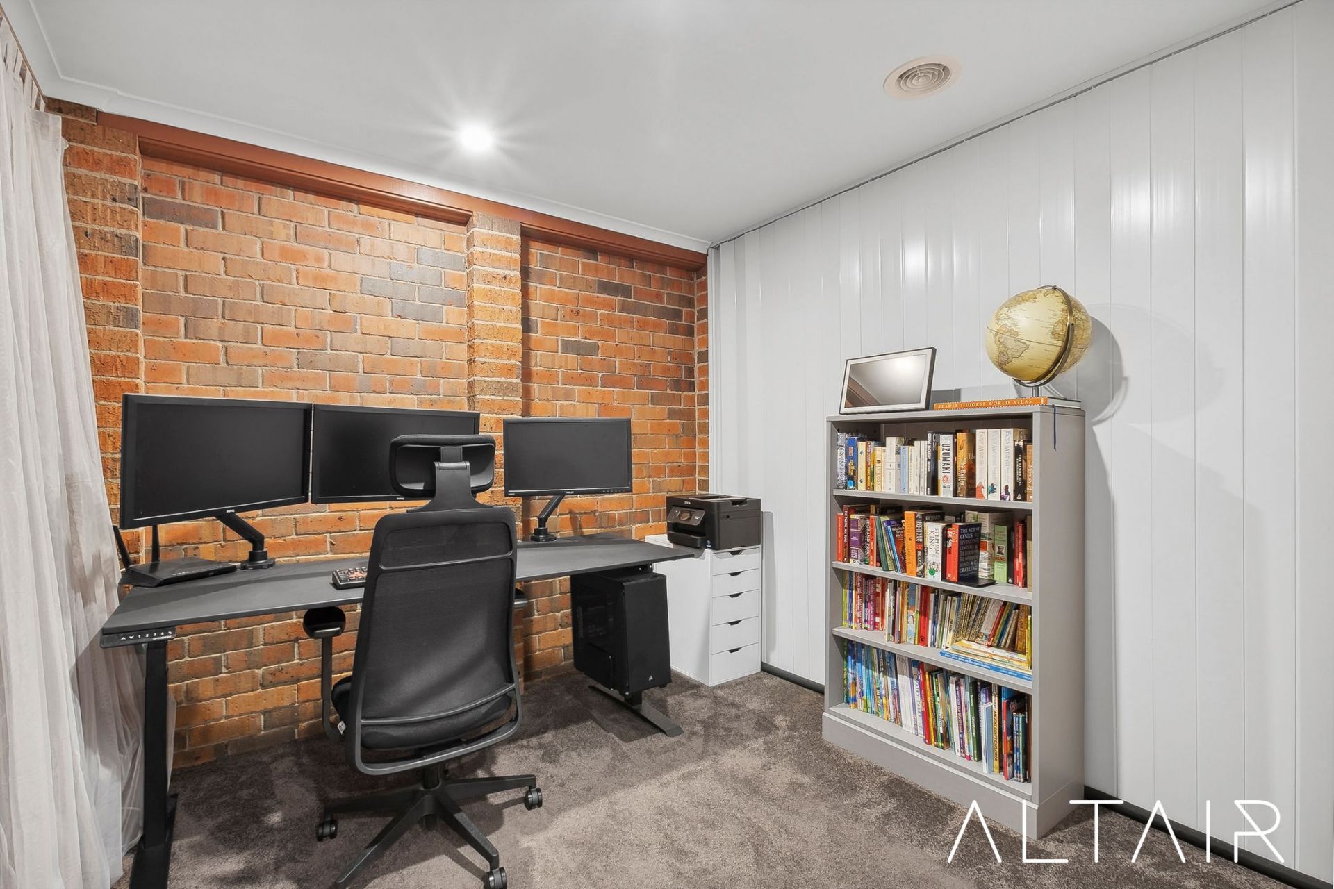 The single lock-up garage for the home is currently being partially utilised as a home office and store room, but can easily be reverted to car accommodation without undertaking any building work, thanks to the use of a versatile concertina door. This home office area has been connected to the heating and cooling system, so it offers a versatile multi-purpose space to meet the needs of any buyer.
