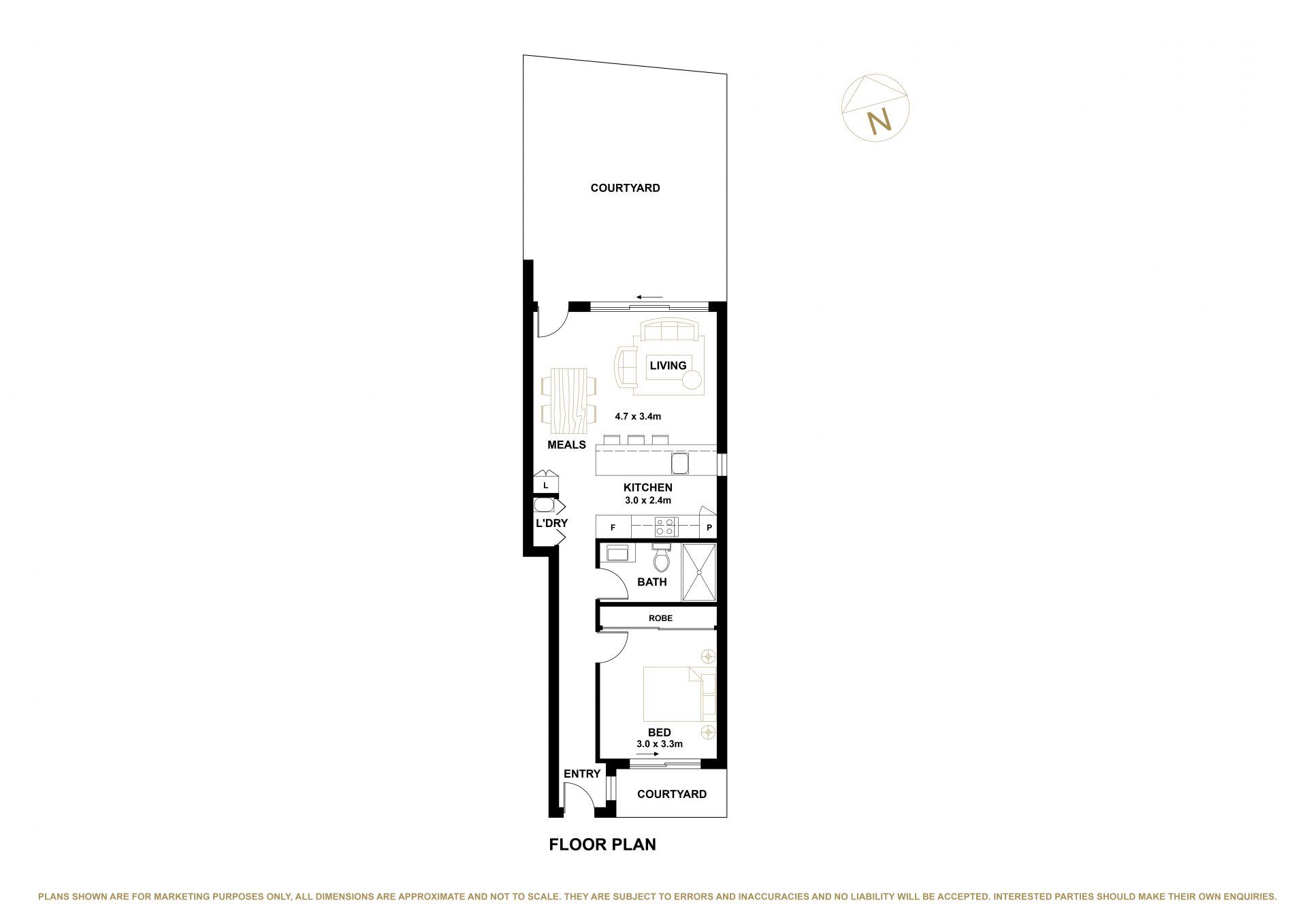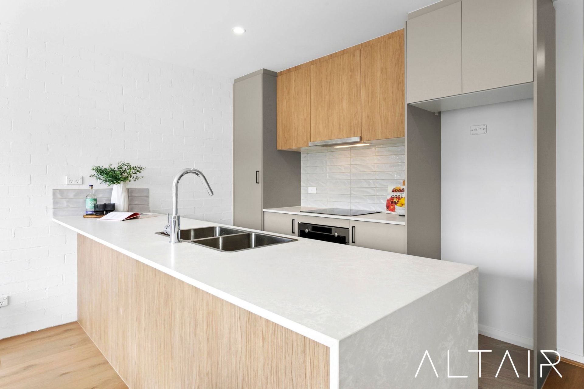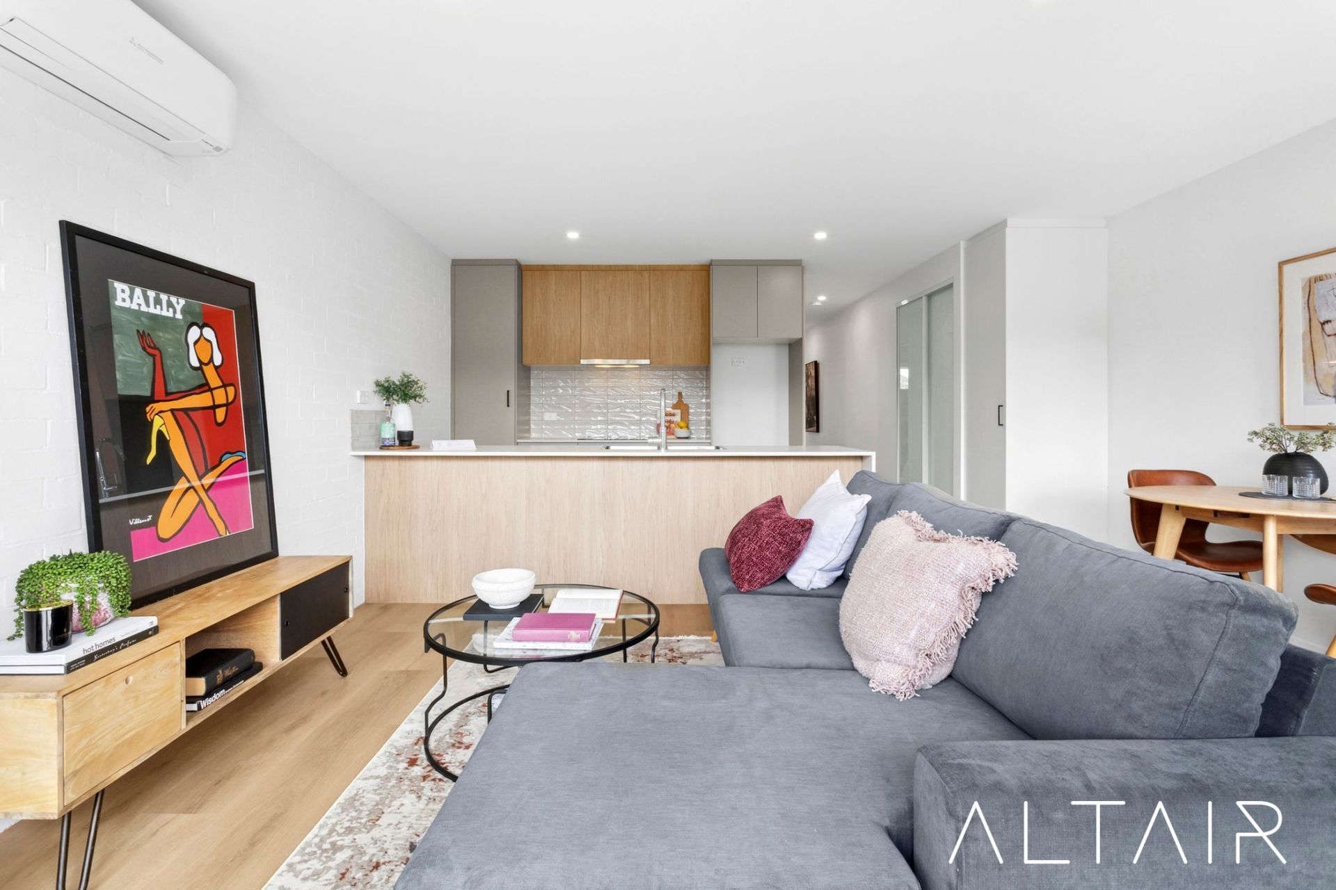 Boasting 59m2 of living space and 35m2 of private courtyard areas, this home has been thoughtfully designed with an emphasis on open-plan living, creating a true sense of space while maintaining versatility. Natural light floods the interiors through large sliding doors on both ends, enhancing the welcoming atmosphere and ensuring a comfortable and inviting environment throughout.