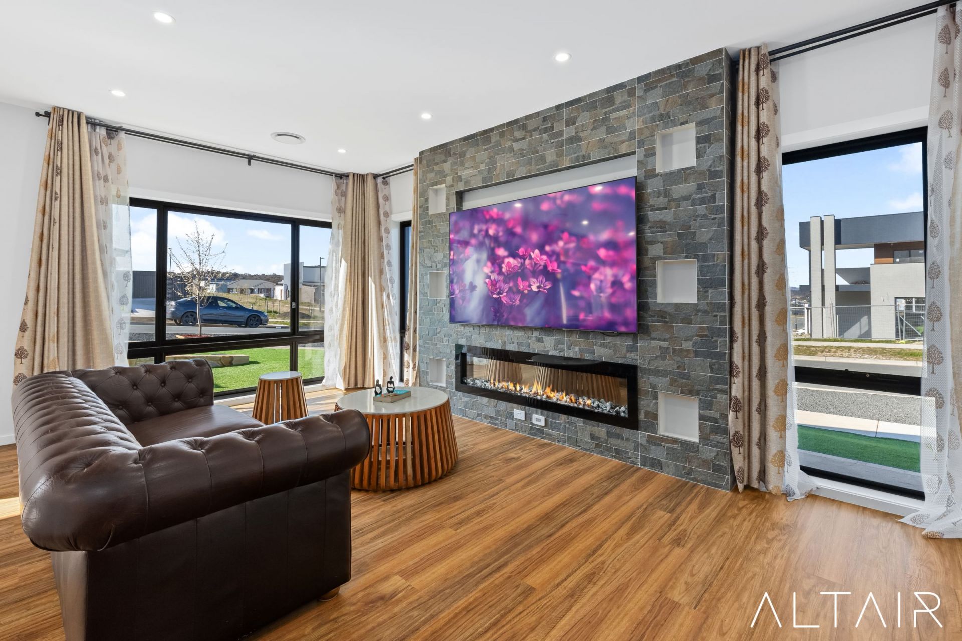 - Feature walls in lounge, family area & master bedrooms