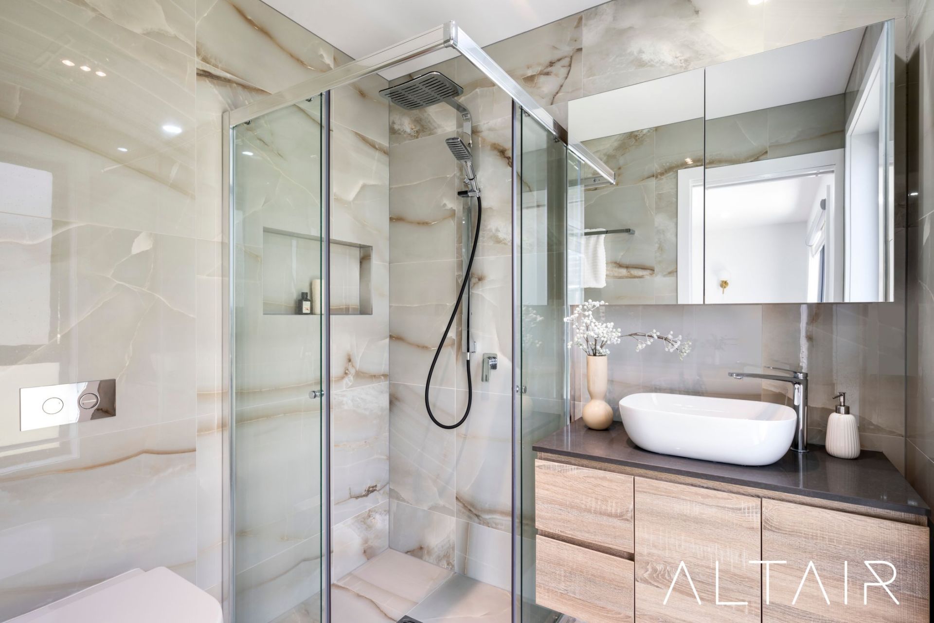 - All bathrooms with full height tiling, semi-freestanding shower screens &
