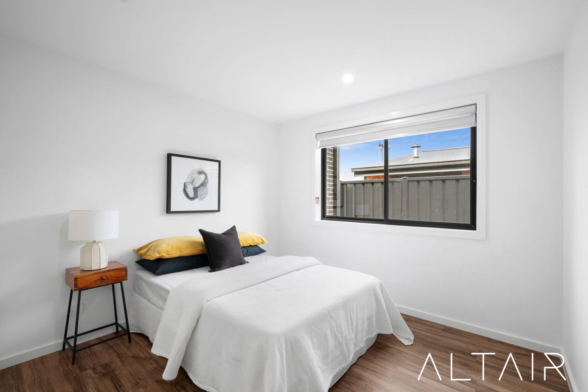 From the street, the striking architectural design makes an immediate impact with a modern skillion roof, oversized windows, and a sophisticated blend of render, cladding, and brickwork. A landscaped front yard and a welcoming porch lead you to the entrance portico, setting the tone for what lies within.