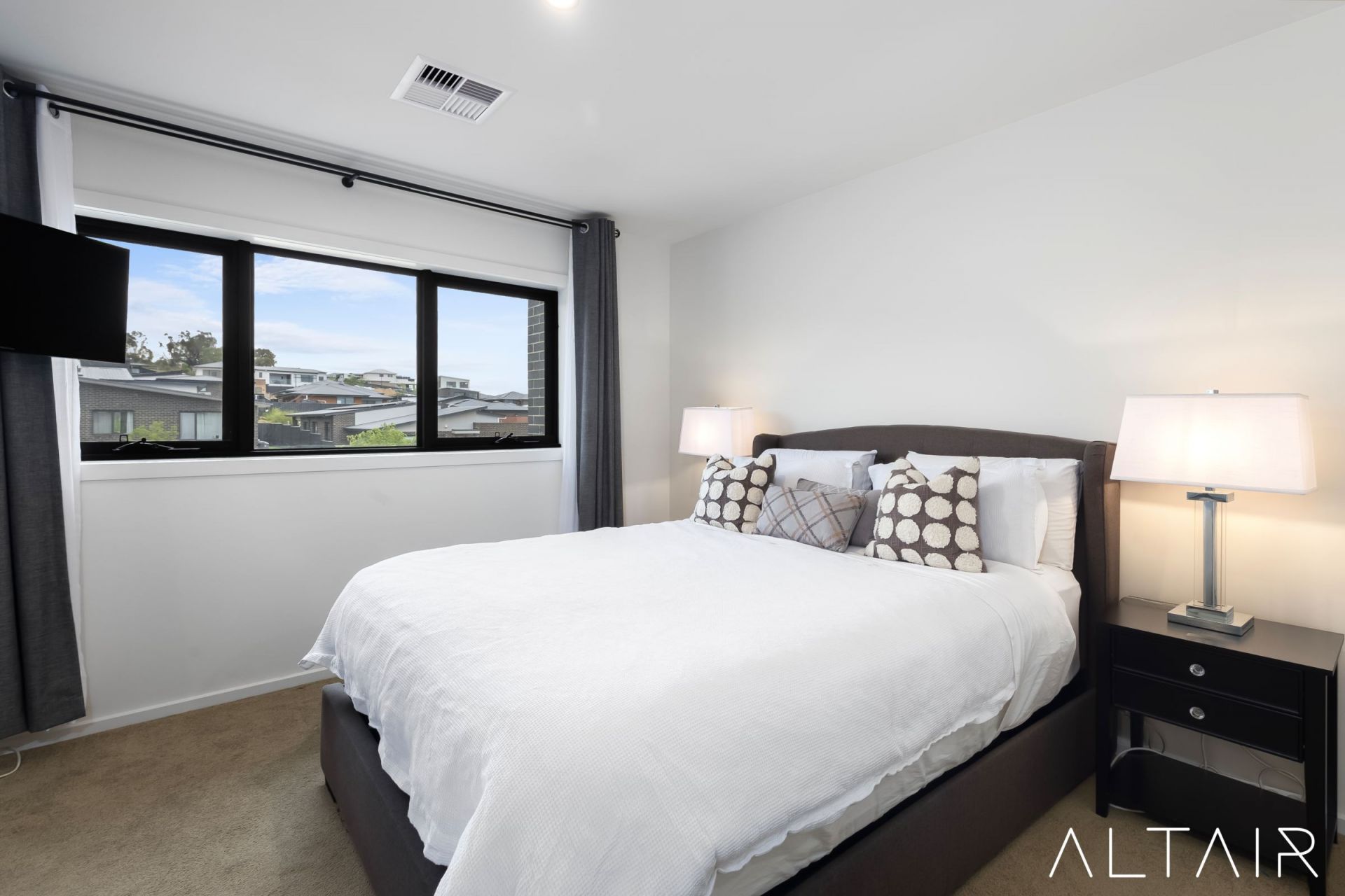 Upstairs you will find two generous bedrooms with large built-in robes & two bathrooms. The master bedroom is overlooking the front courtyard & nearby park, while the rear bedroom looks over the Canberra backdrop capturing the Telstra tower from the elevated position making sure everyone has a beautiful view to wake up to. There is also a third bedroom on the lower level serviced by a powder room which can be used as a guest bedroom, lounge or an office/study.