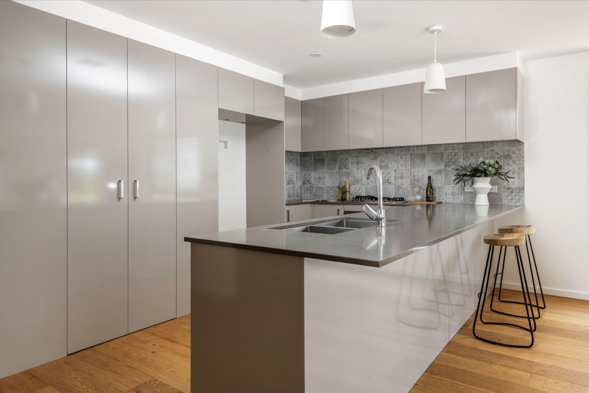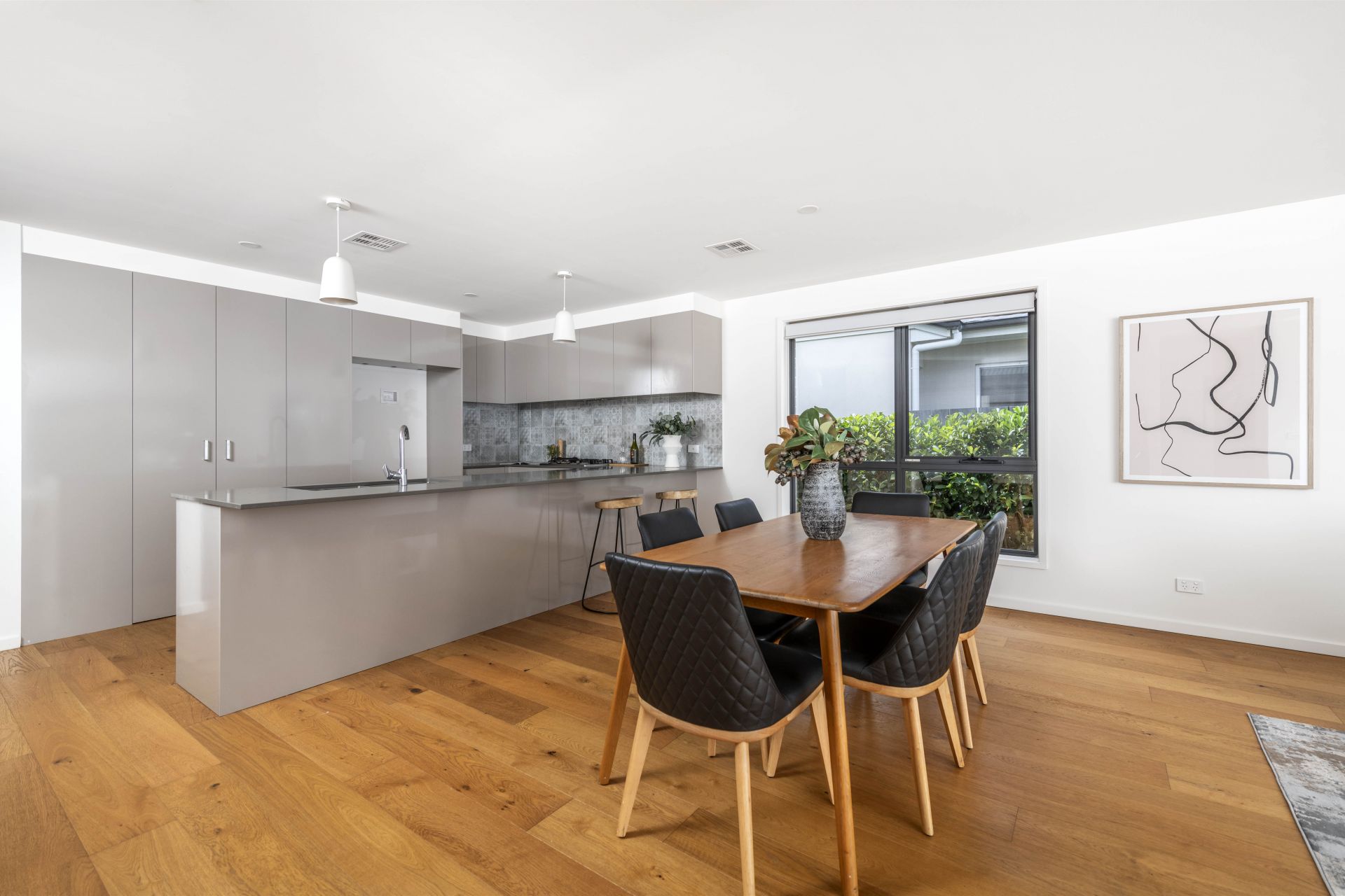 The heart of the home is the impressive designer kitchen, complete with stone surfaces, a large breakfast bar, and Miele premium range appliances, making it a culinary enthusiast's dream. Luxurious touches abound, including oak timber floating floors and well-appointed bathrooms with customised joinery and quality fixtures, ensuring both comfort and style at every turn. Additionally, stay comfortable year-round with reverse cycle ducted heating and cooling throughout, along with double glazed windows and an instantaneous gas hot water system.