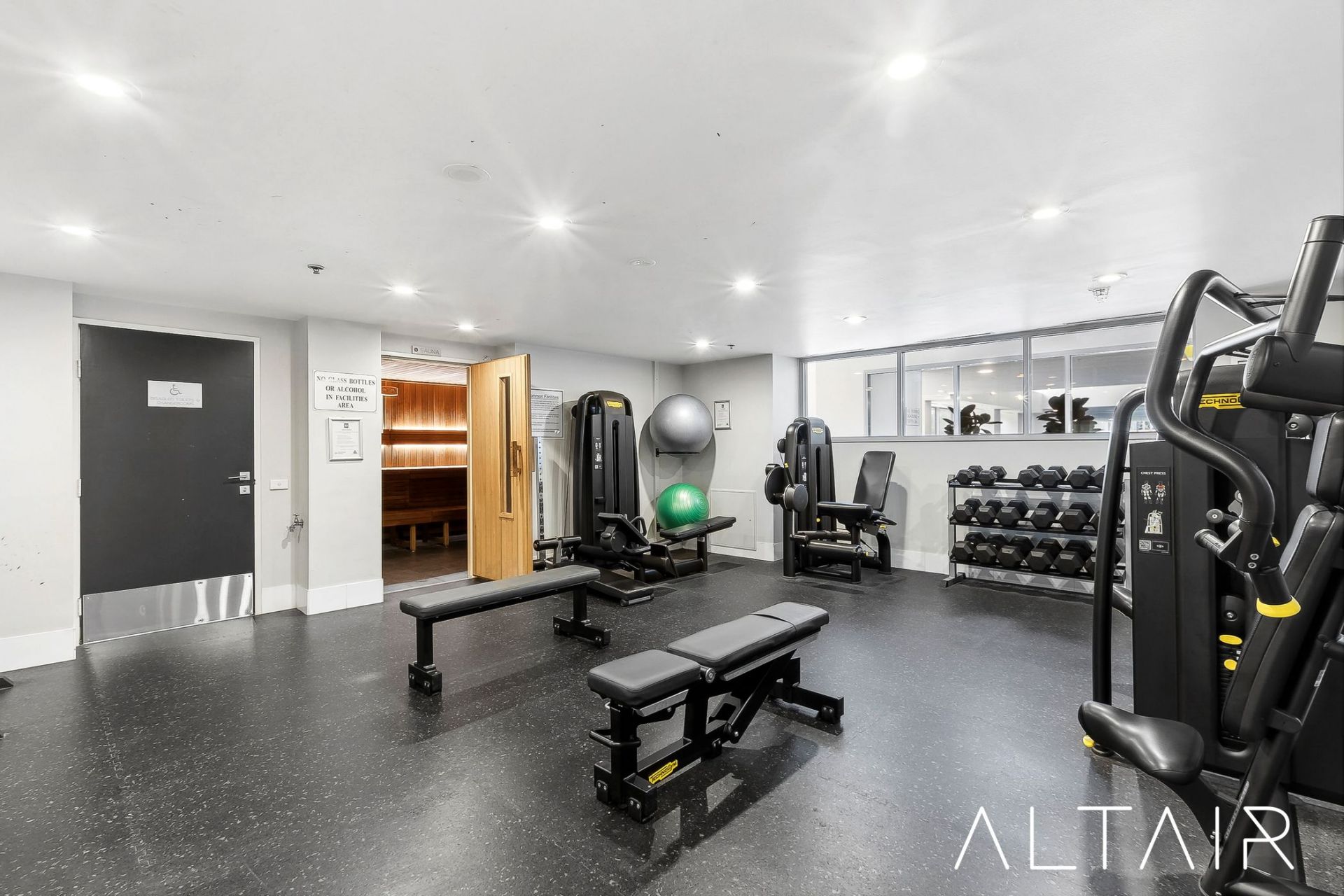 • Fully equipped gym with separate weights and cardio rooms