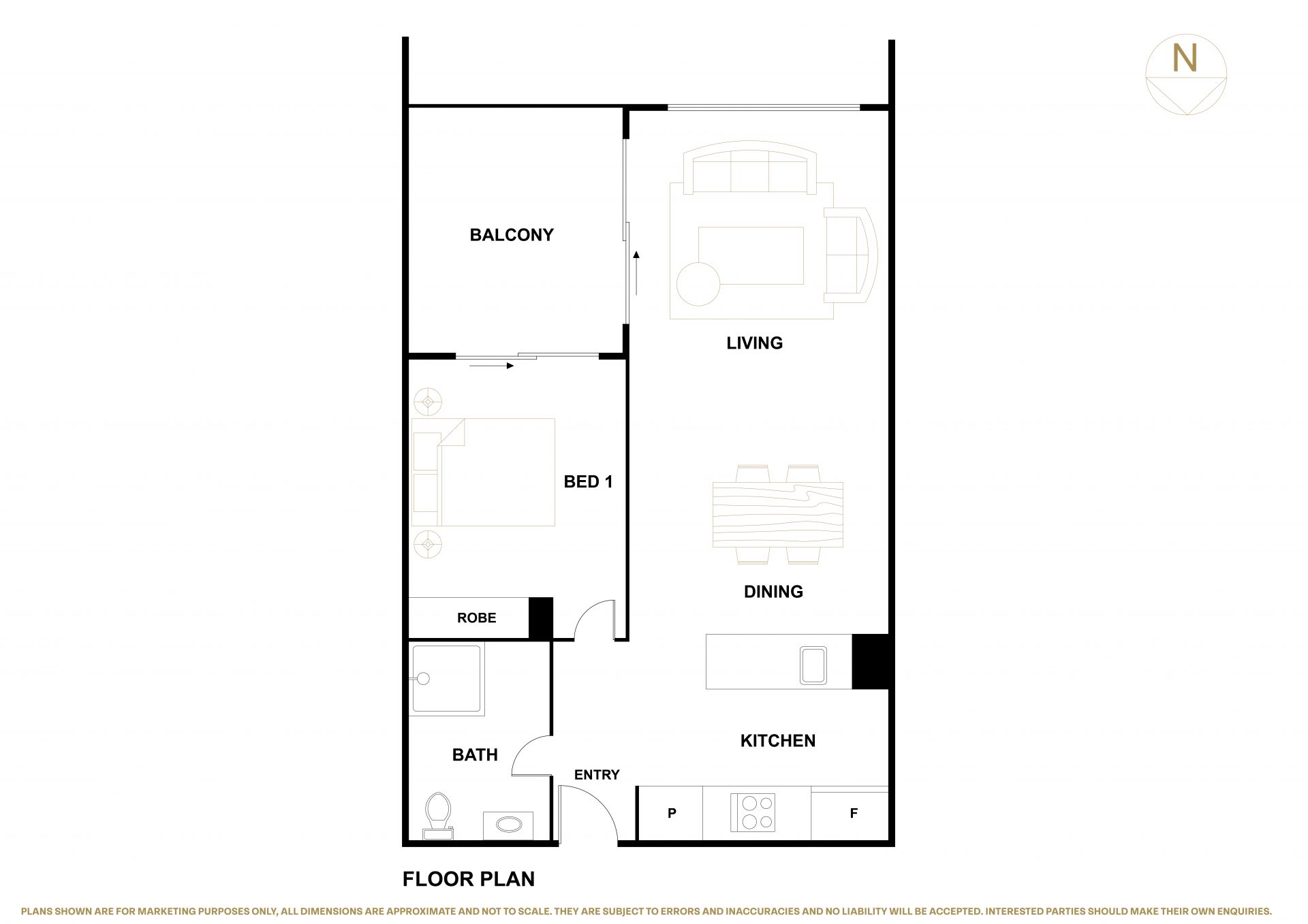 Thoughtful storage solutions are found throughout the apartment, including a built-in robe in the bedroom, a large linen cupboard, overhead kitchen cabinets, and a basement storage cage for those extra belongings. With everything neatly tucked away, your living space will always feel open and clutter-free.