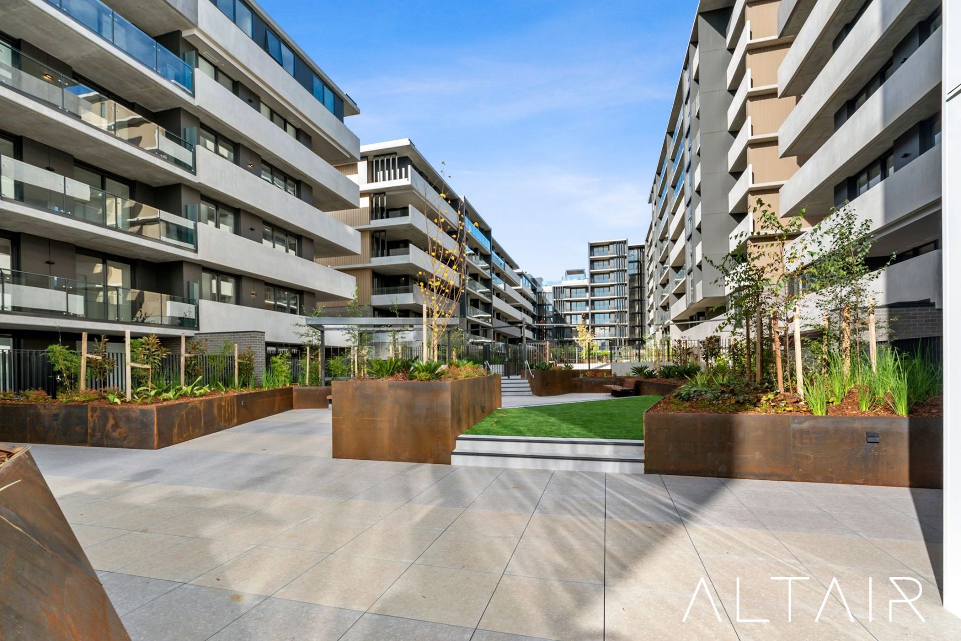 The resort style facilities on offer within the development sets a whole new standard for apartment living in Canberra. By taking the lift, you can access the rooftop area which includes a heated swimming pool, day bed relaxation area, BBQ area, communal garden & zen garden. In addition to this the ground level offers a host of secured landscaped areas & a dog park with integrated seating & feature lighting in the evening.