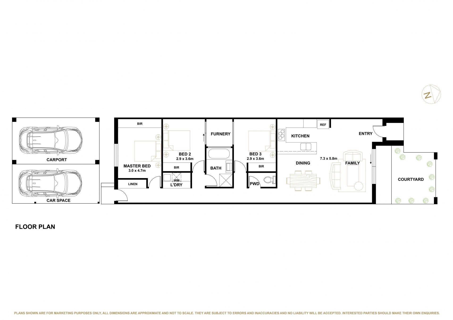 • Internal living area: 105m2