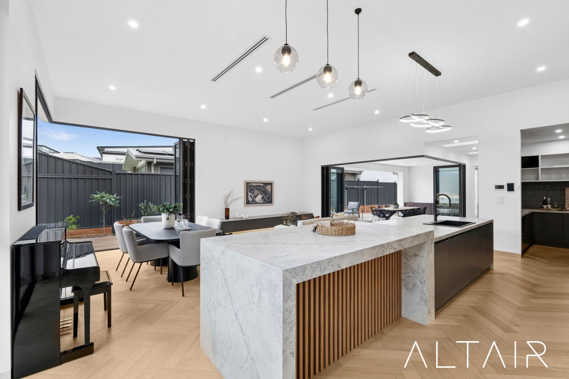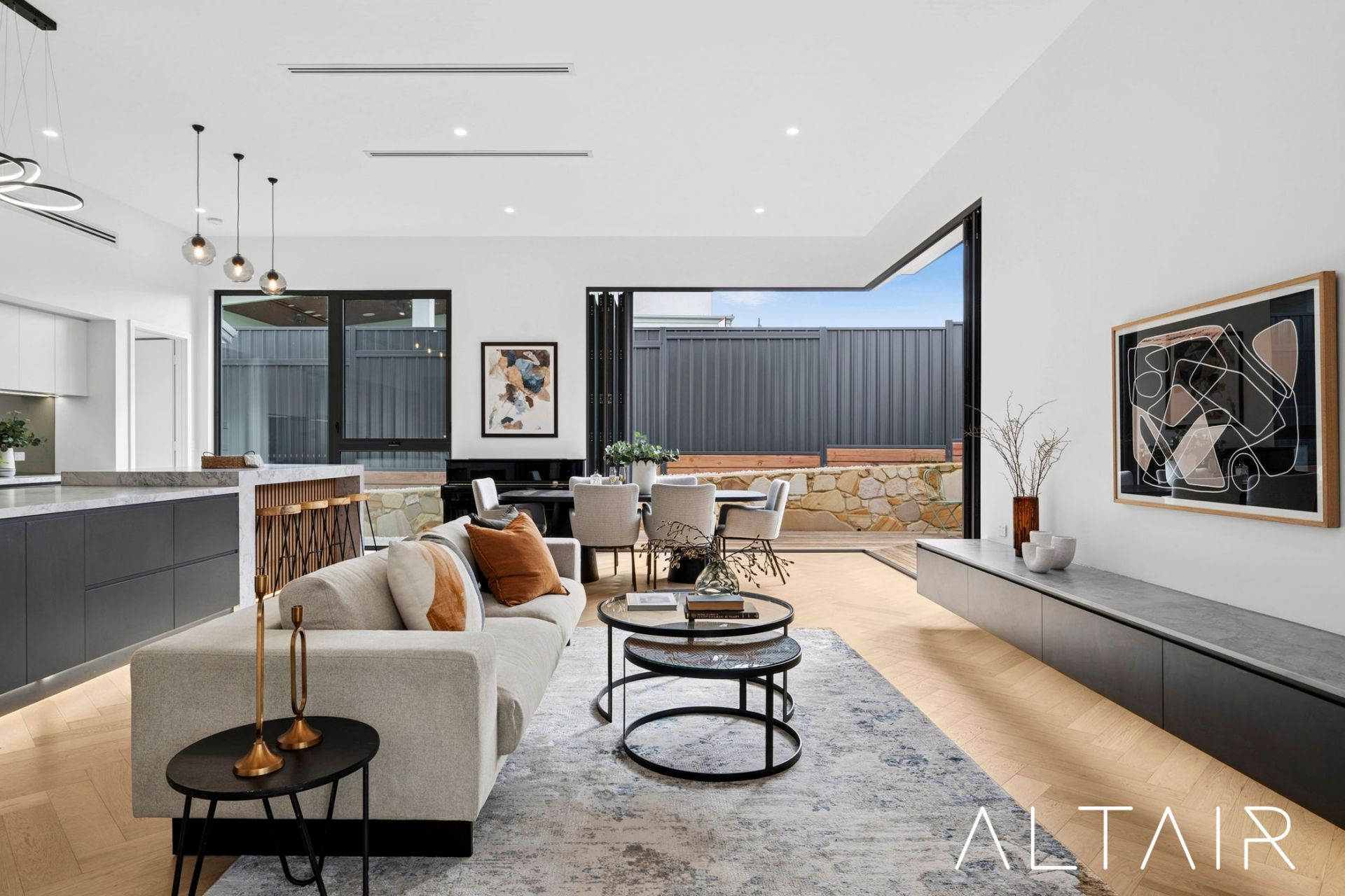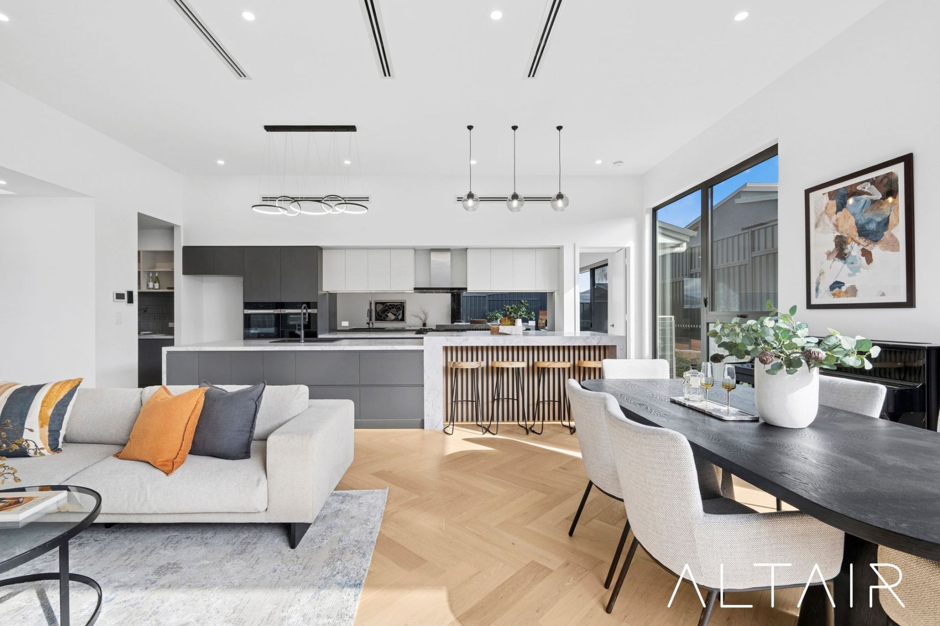 Inside, natural light fills the home, complemented by engineered herringbone timber flooring, designer tiles, and high ceilings throughout-delivering a refined sense of comfort and luxury. Spanning an impressive 236m2 of living space, the home provides a variety of living zones ideal for relaxation and entertaining in style.