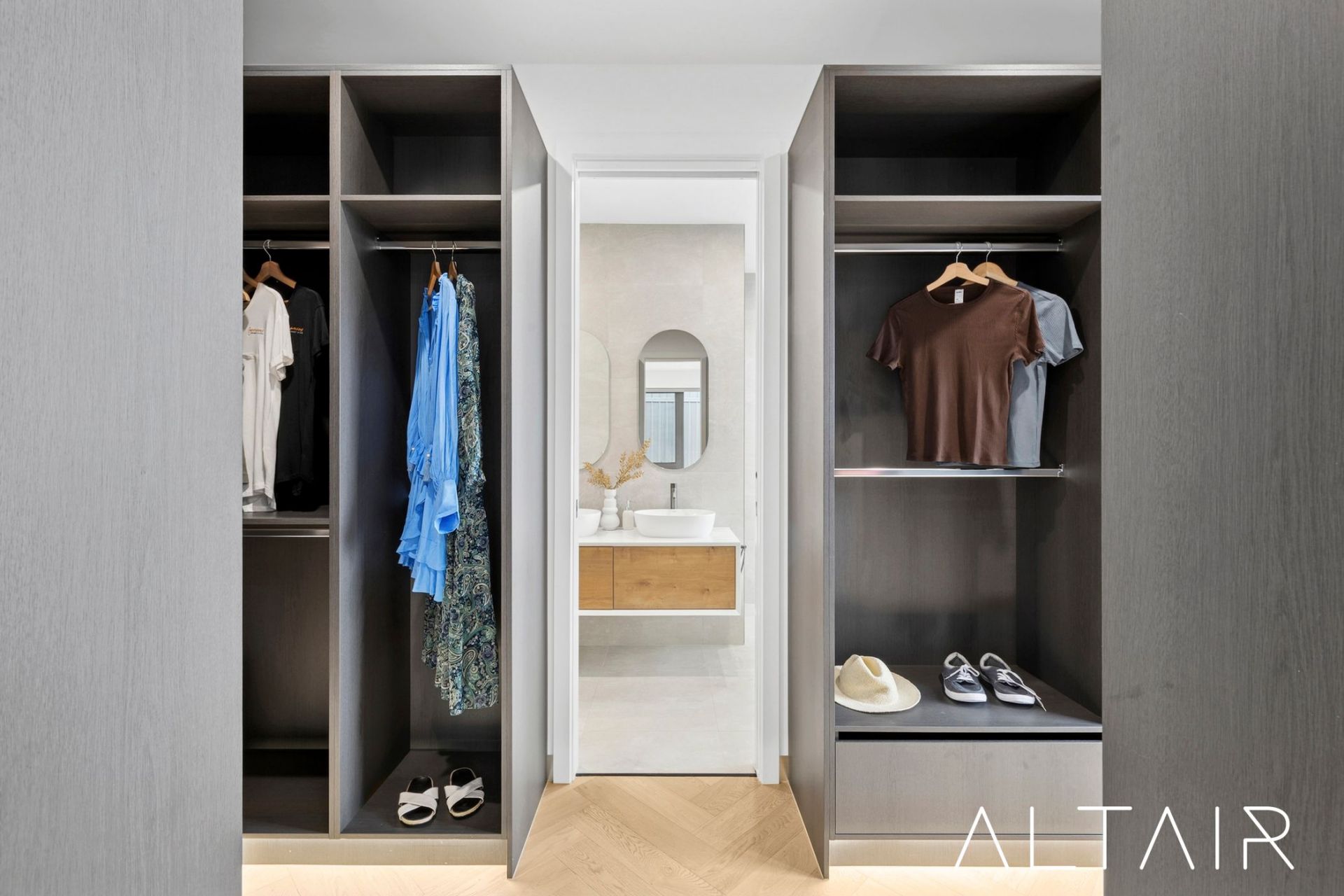Accommodation is thoughtfully designed with two large master suites. The primary master, positioned at the rear, includes oversized windows, a walk-through robe, and a luxurious ensuite with freestanding bath, floating dual vanities, designer tapware, and a rain shower-creating a private, spa-like retreat. The second master at the front of the home features a walk-in robe and its own ensuite-perfect for guests or multi-generational families. The two additional bedrooms are well-sized, each with custom built-in robes and individual ensuites, offering privacy and comfort for every family member. A separate powder room, located near the rumpus, adds extra convenience for guests.