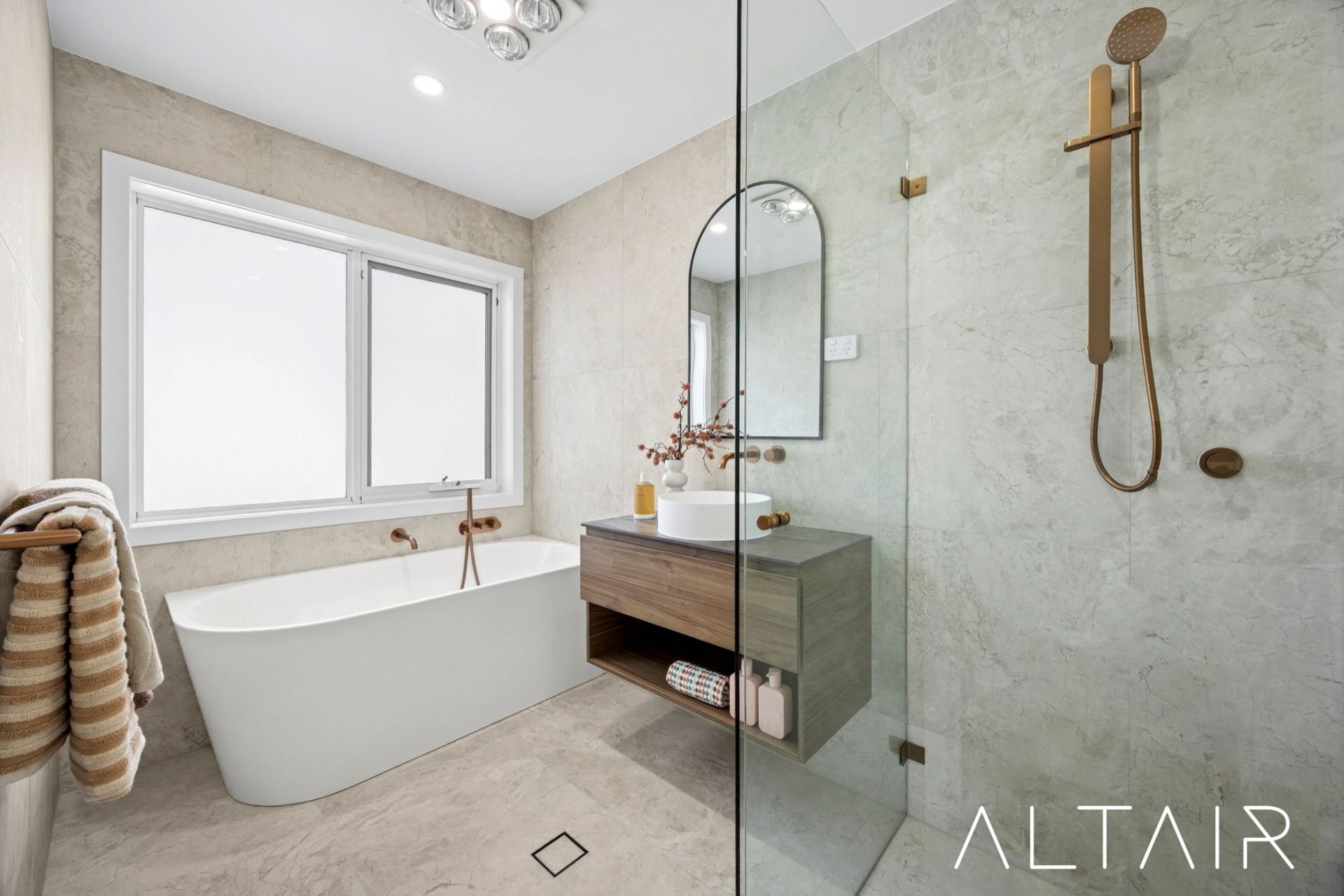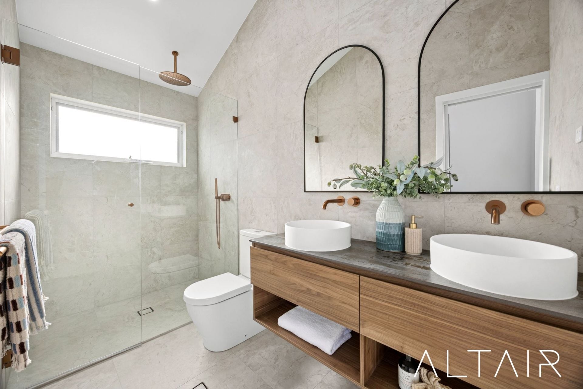 - Modern bathrooms with semi-frameless shower screens, rain-showers, free-standing bathtub & designer fixtures