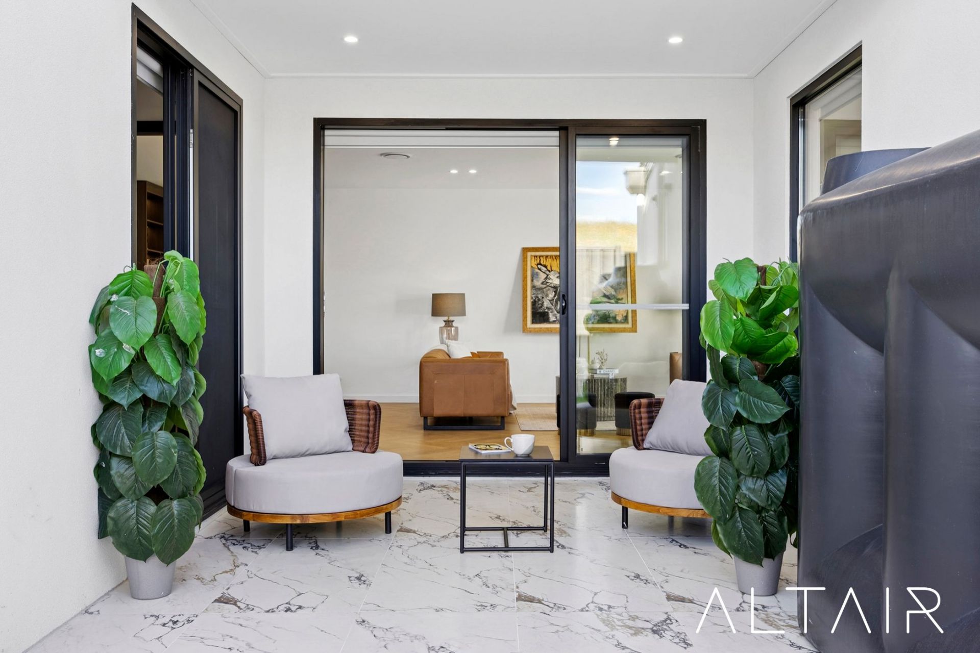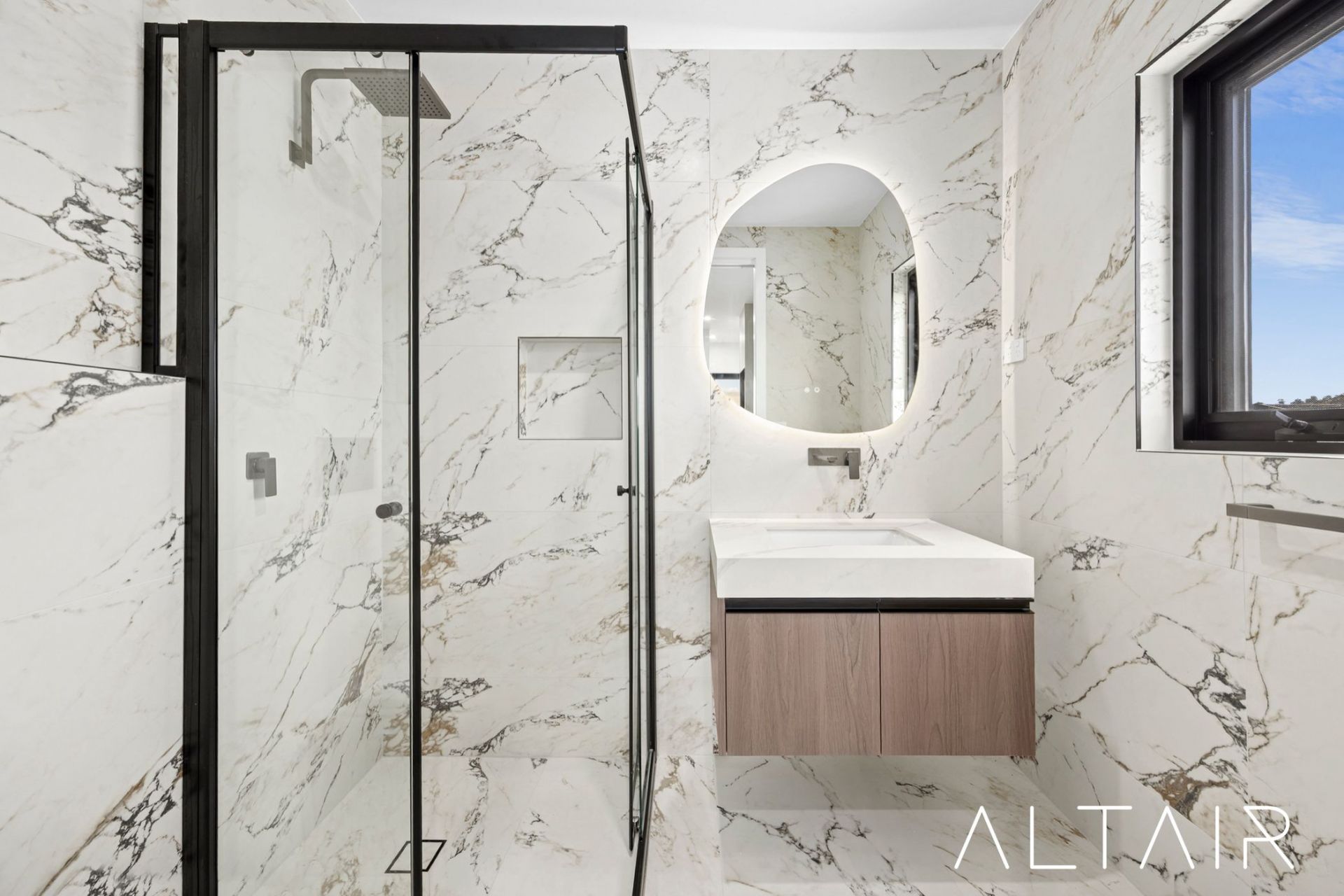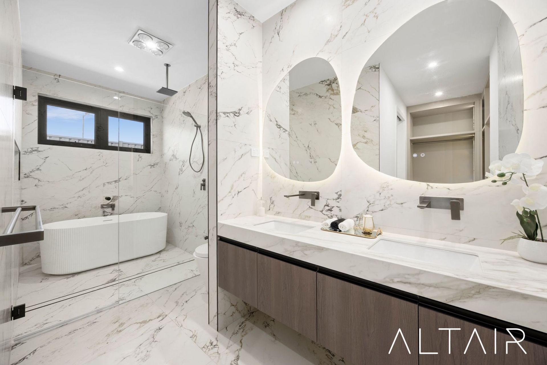 The main residence offers 4 generous bedrooms, each with built-in robes. The master suite is a true retreat, featuring a spacious walk-in wardrobe and a luxurious ensuite finished with a rain shower, twin basins and a free-standing tub. Two further luxurious bathrooms - including a main bathroom with the same luxury finishes - serve the remaining bedrooms downstairs, delivering both practicality and a true sense of elegance.