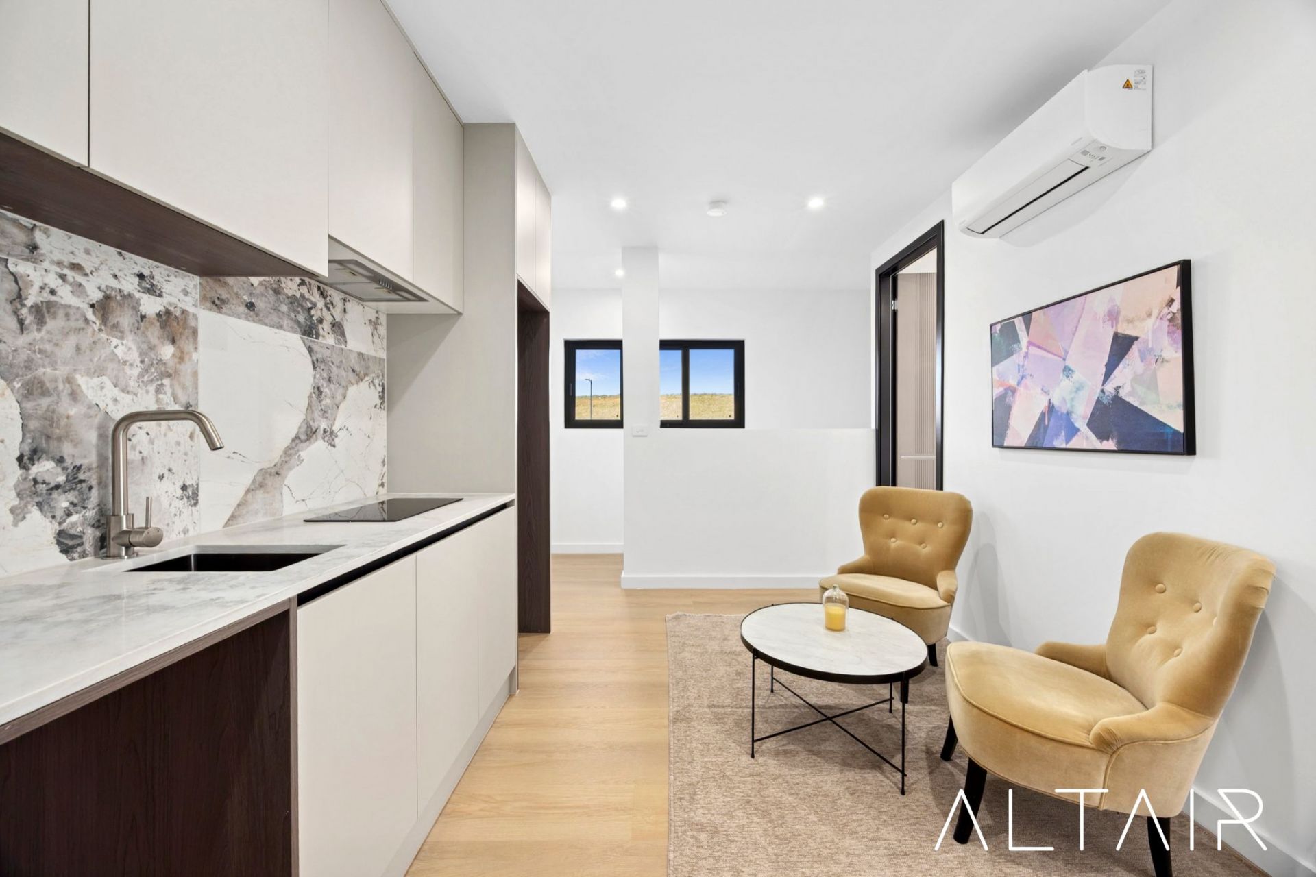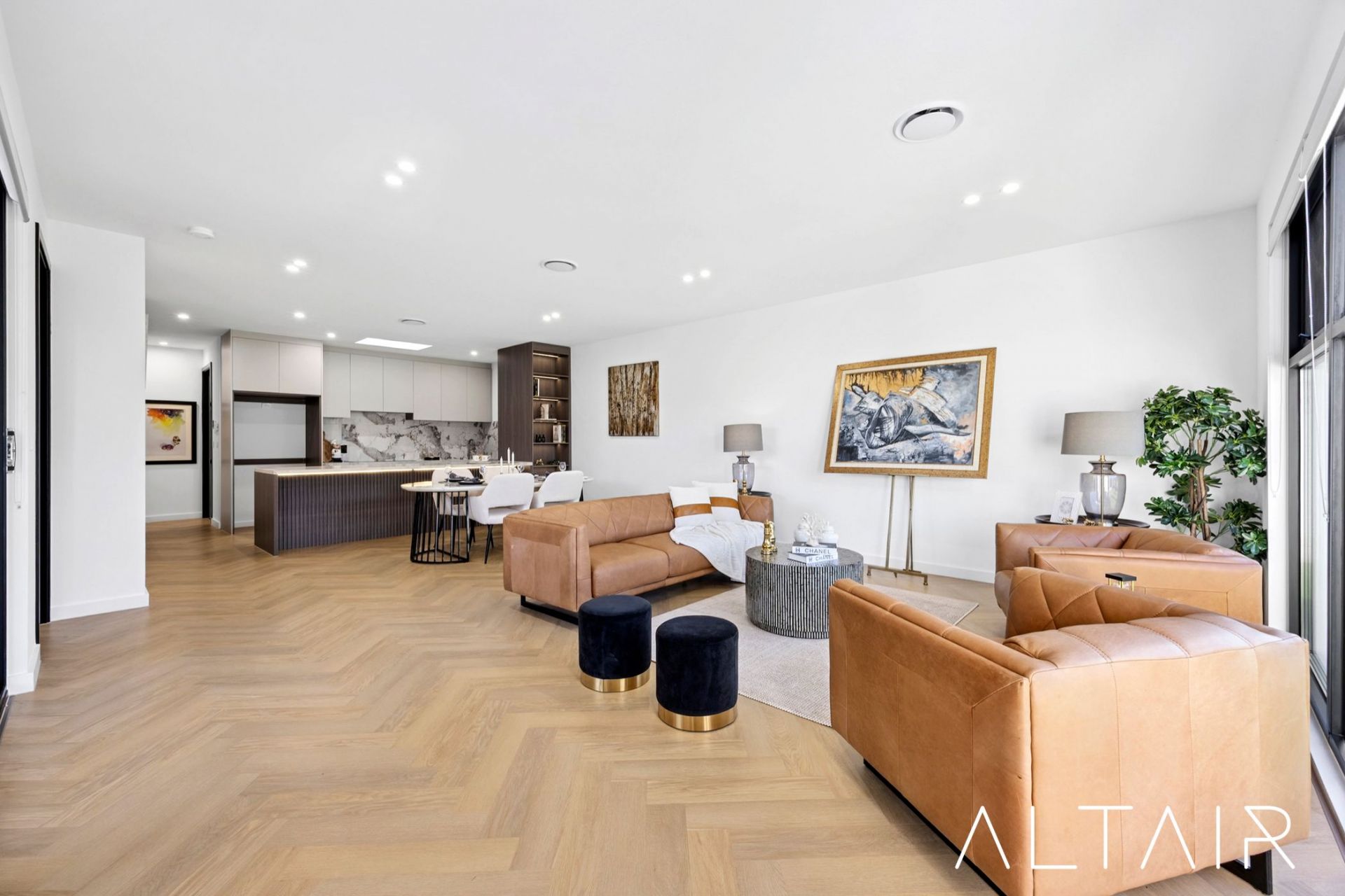 Carefully curated high-end inclusions elevate the home's comfort and efficiency, with zoned ducted reverse-cycle air conditioning on the ground floor, split system air conditioning upstairs, timber flooring throughout, and double-glazed windows for year-round comfort.
