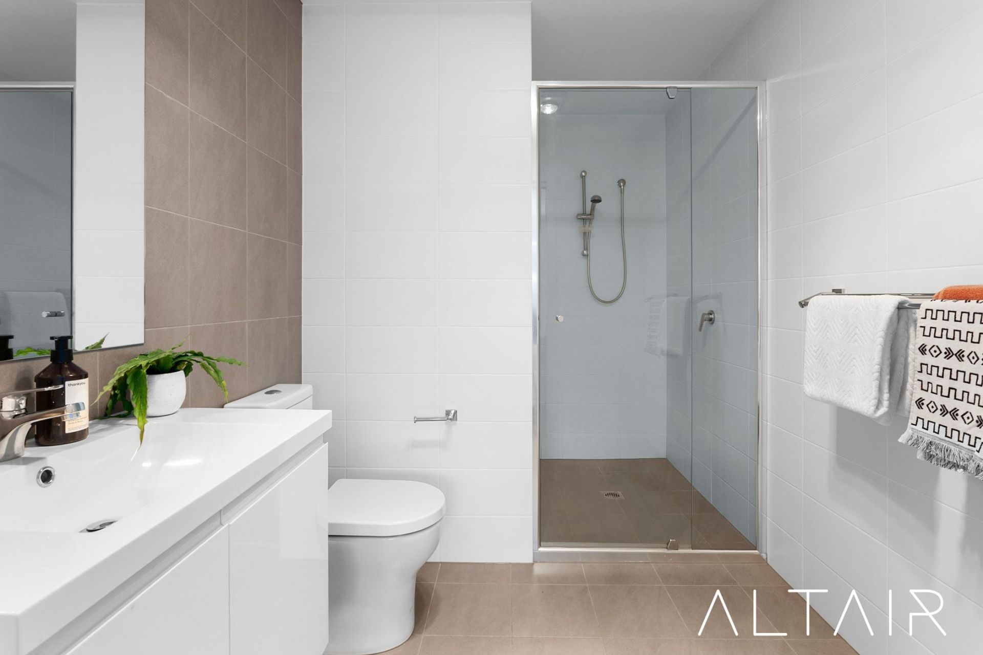 - Modern bathrooms with wall hung vanities, semi-frameless shower screen, bathtub & quality fixtures