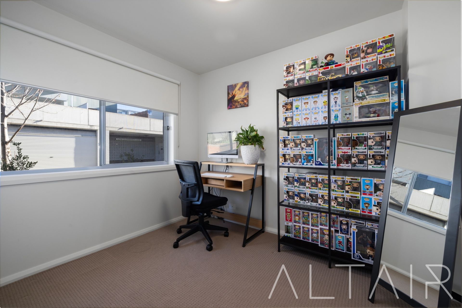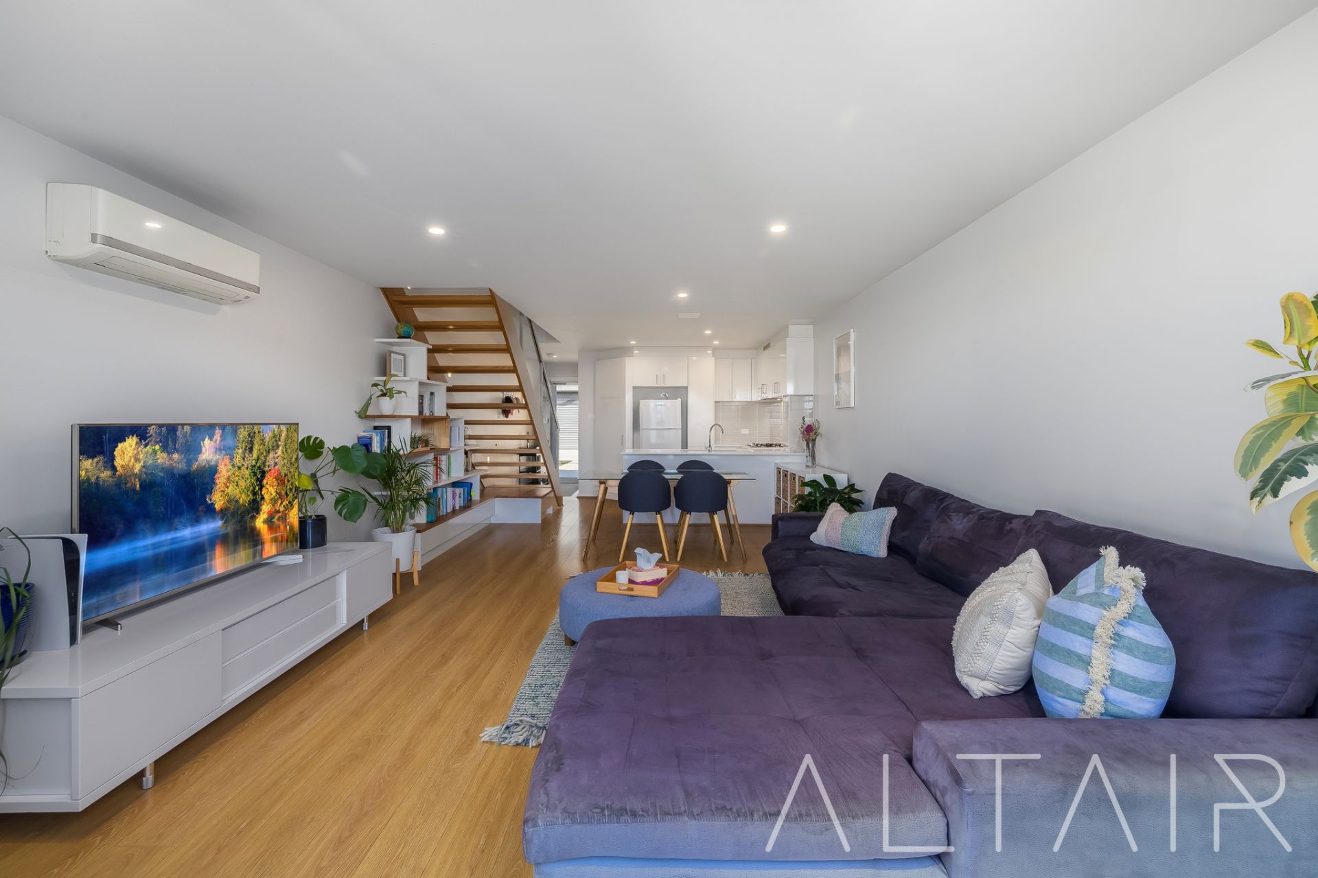 Set over two levels, you can enjoy the privacy on offer as upstairs the two bedrooms are well segregated from the living space. All bedrooms are generous in size & are complete with large built-In robes. The master bedroom is complete with an ensuite bathroom & offers spectacular views of the Telstra Tower. The other two bedrooms are serviced by a sumptuous bathroom complete with a bathtub. All bathrooms feature a modern design with wall-hung vanities, full height tiling & semi-frameless shower screens.