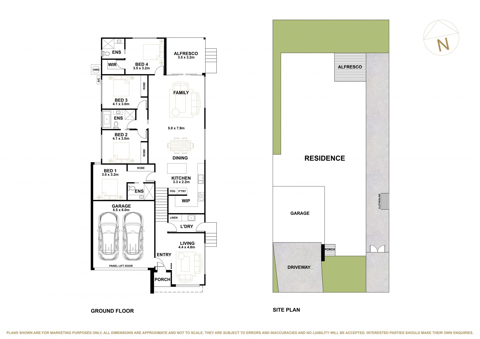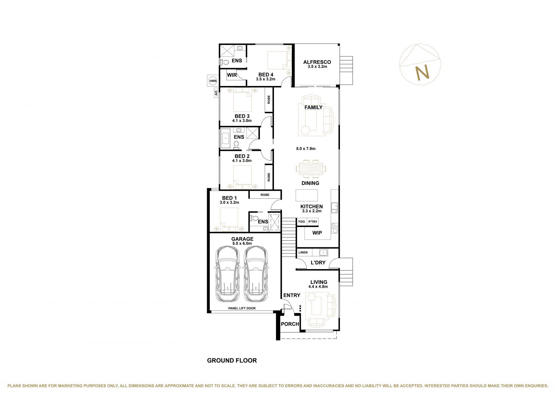 The grand family & meals area takes center stage with 3.6m high ceilings, and highlight windows drenching the area in natural light. The double-glazed sliding doors provide instant access to the elevated alfresco perfect for family and entertainment year-round. Whether prepping for parties or watching kids play, the floorplan makes it happen with ease.