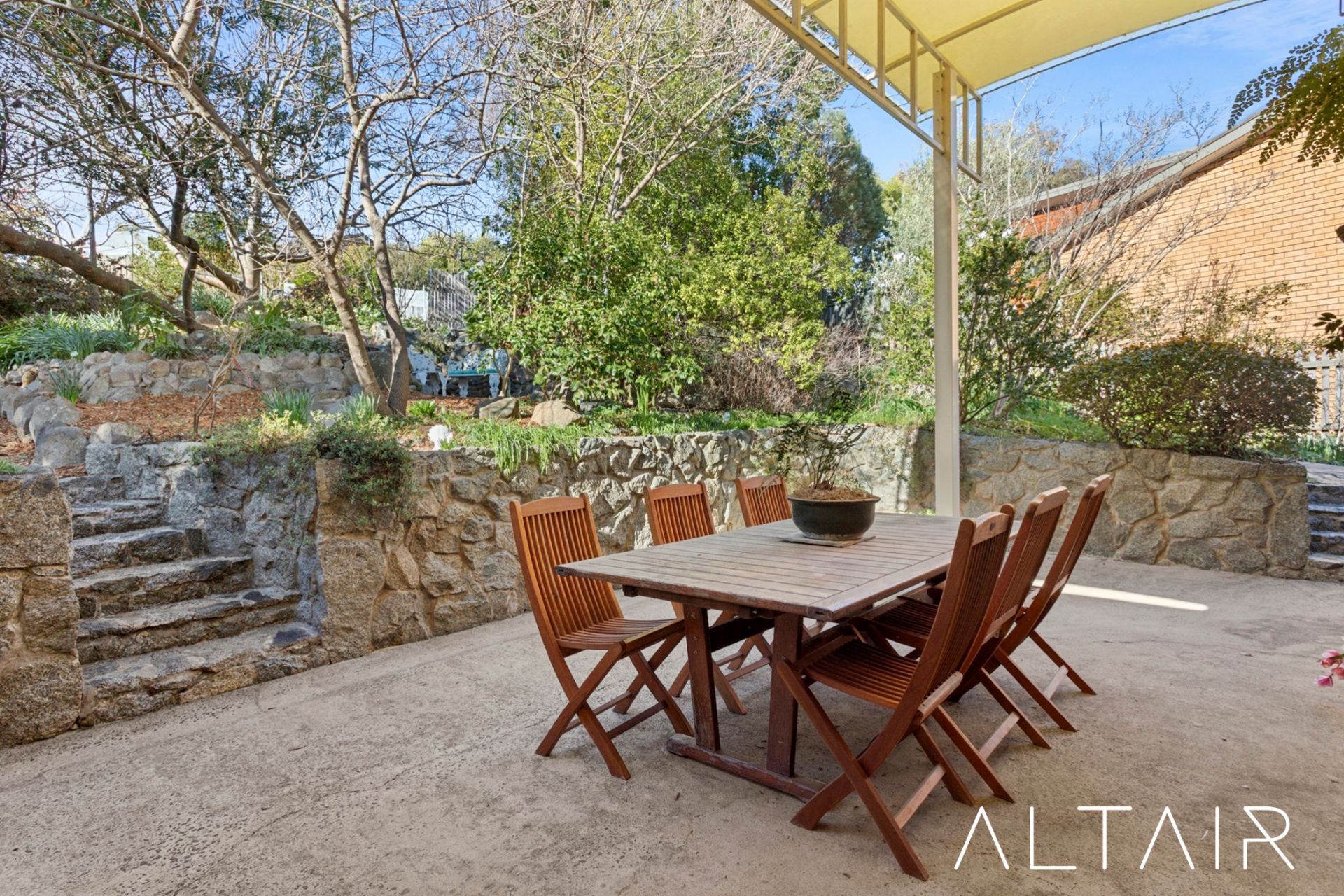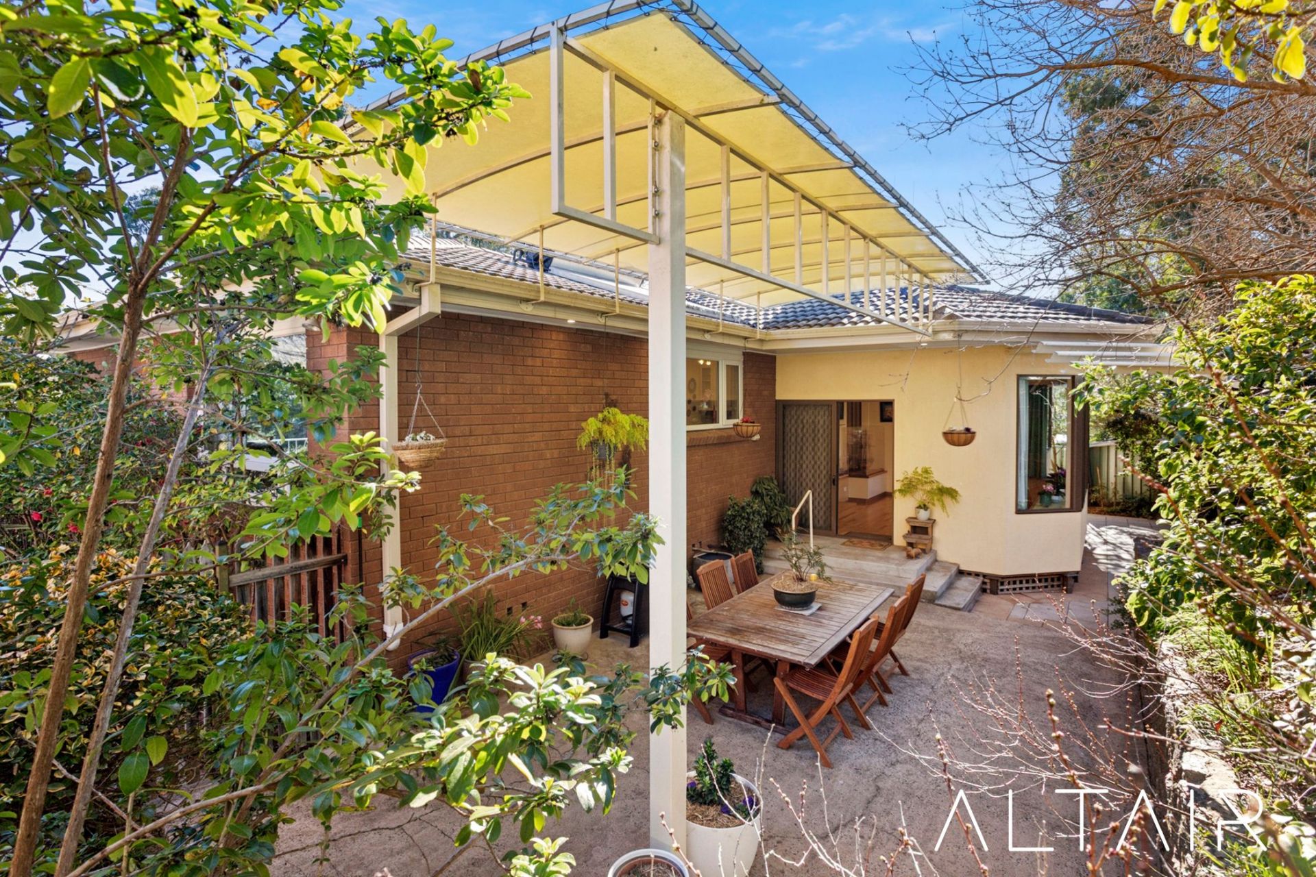 - Oversized pergola ideal for entertaining