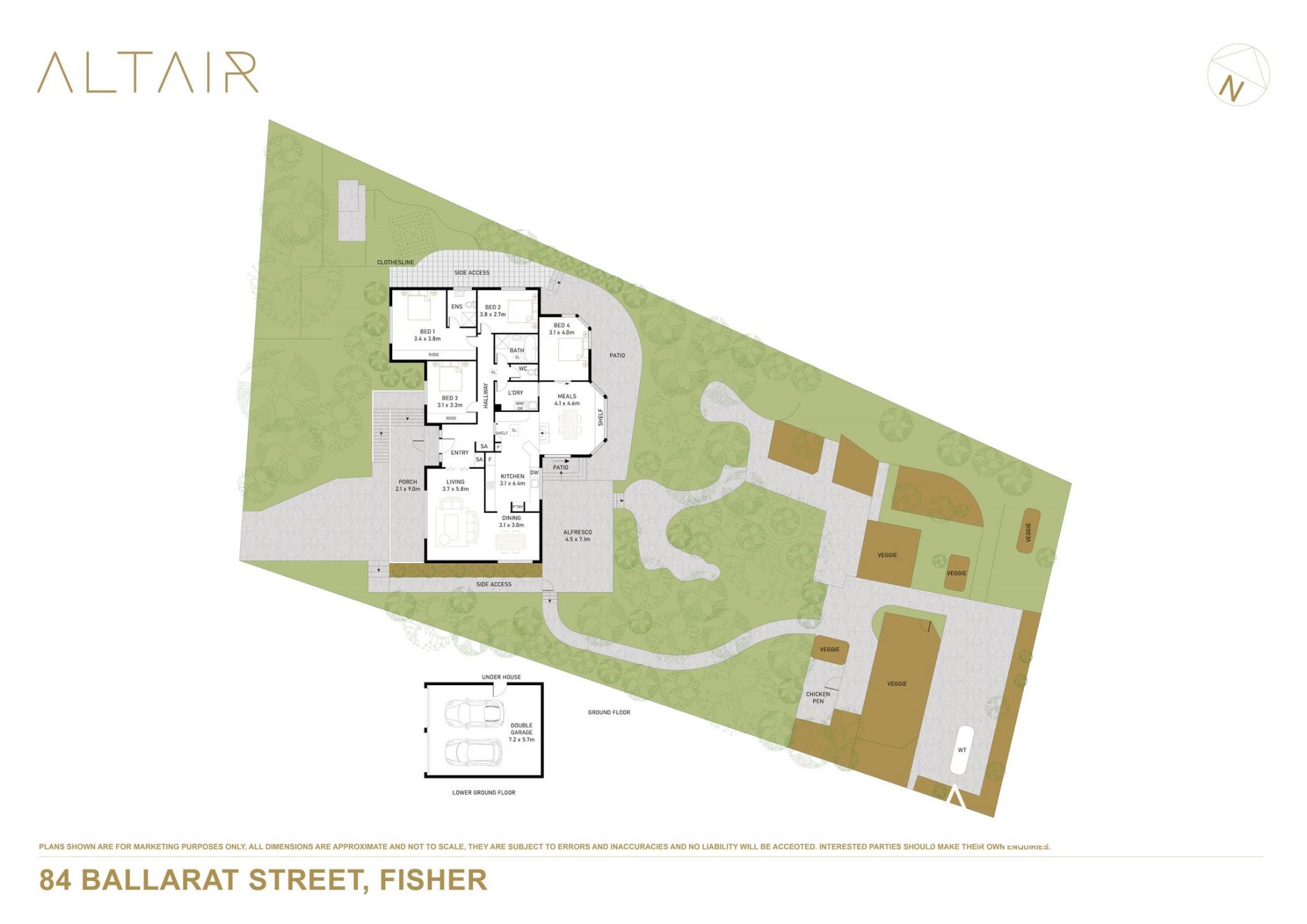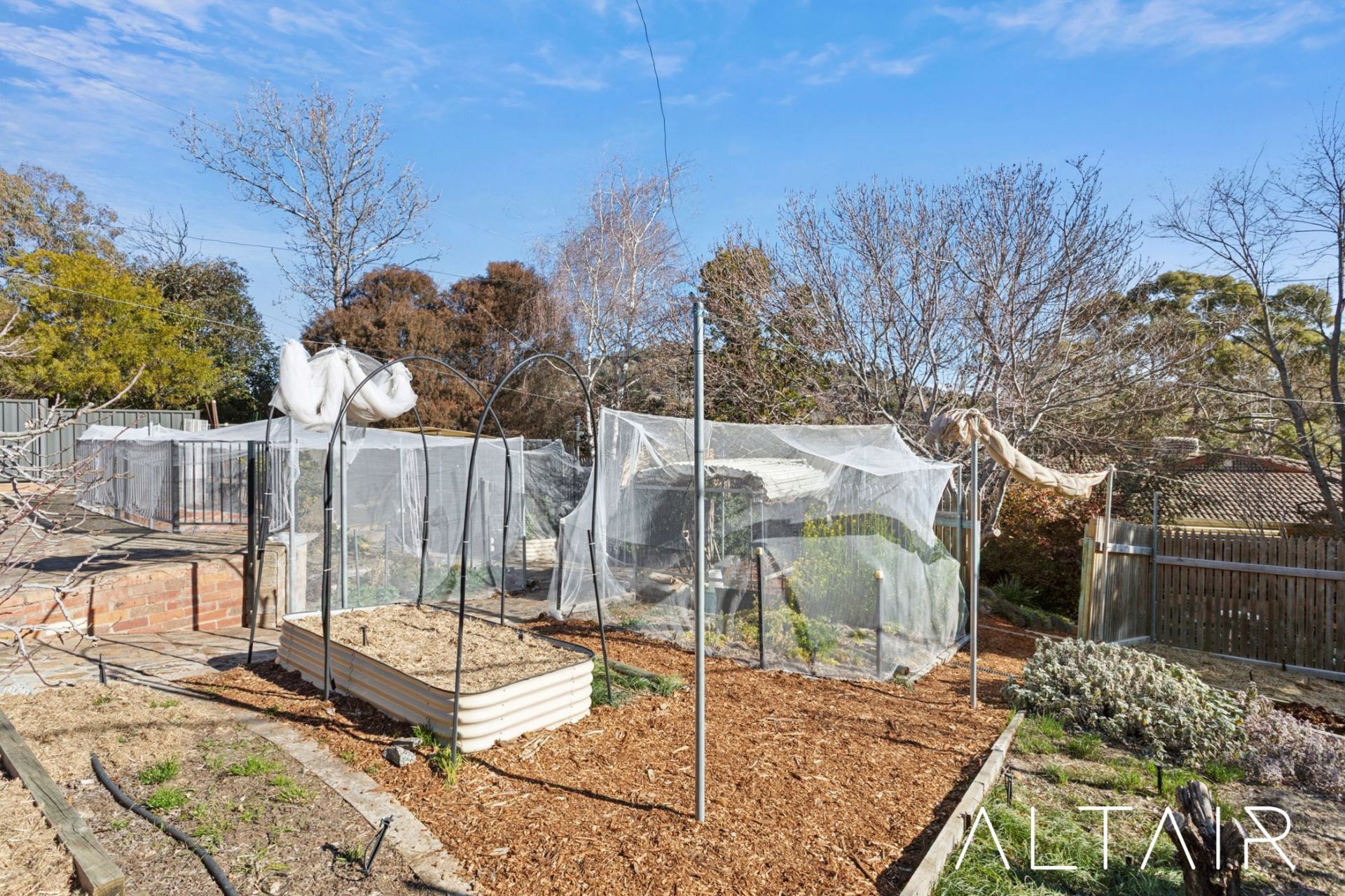 Outdoors, the property truly shines. A rear pergola-covered entertaining area and front elevated deck provide the perfect backdrop for gatherings, while the established gardens offer both beauty and productivity. Fruit trees including peaches, figs, and olives sit alongside raspberry, blueberry and strawberry patches, roses, and a striking crab apple tree. Well-planned netted vegetable gardens and a drip irrigation system make this a dream for the home gardener. There is also a chicken coop completing the picture of a sustainable and family-friendly lifestyle.