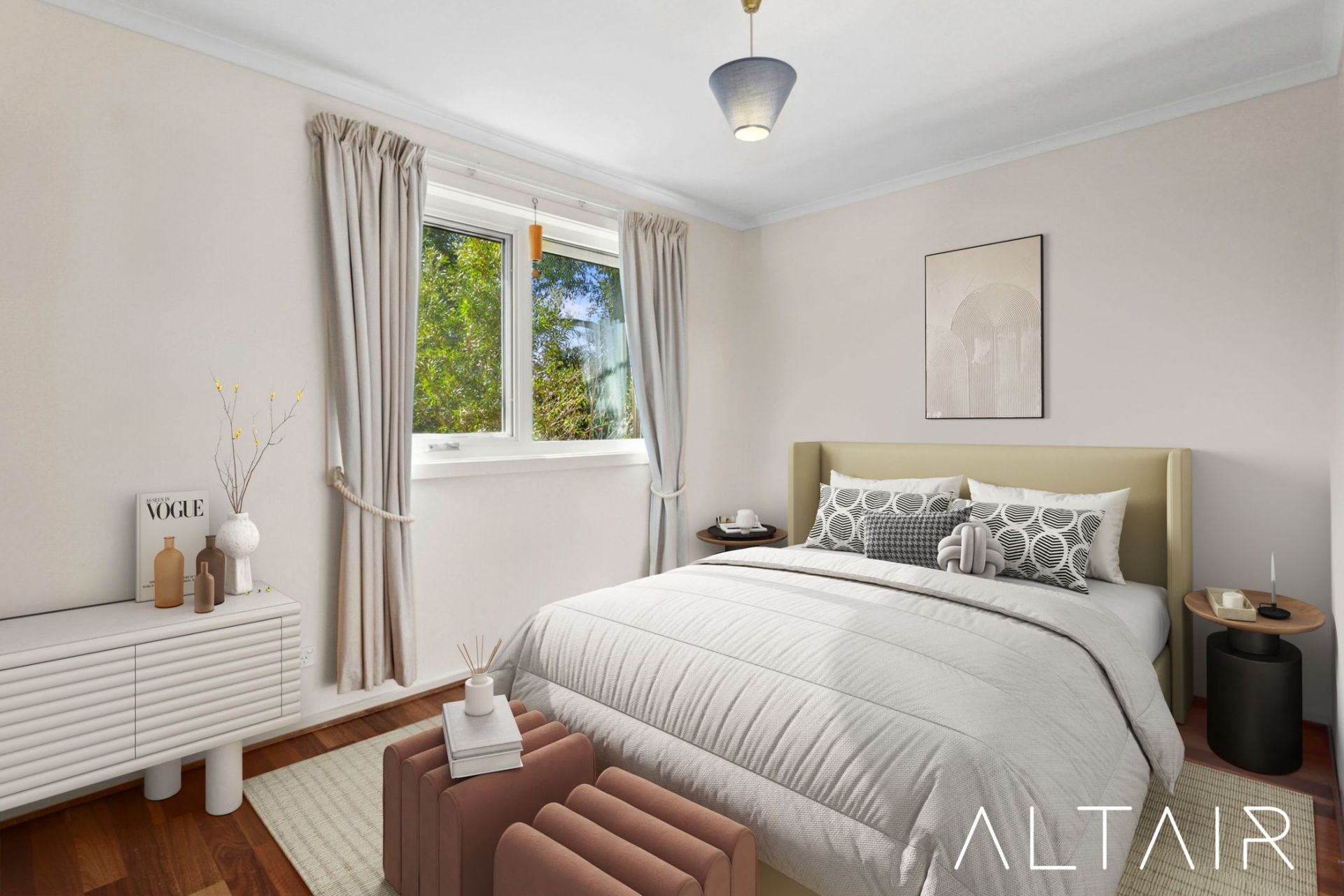 - Double-glazed windows and quality window furnishings including curtains, honeycomb blinds and automated external awning