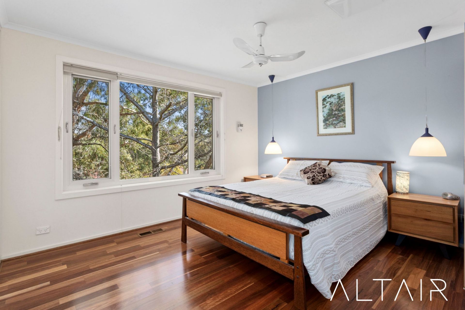 Accommodation comprises 4 generously sized bedrooms all with large windows. The main bedroom has a ceiling fan and up/down blinds that provide privacy combined with views of the trees. The bathrooms and separate toilet have been stylishly renovated, with the main bathroom showcasing a spa bathtub, quality vanities, and premium fittings for a resort-style feel.